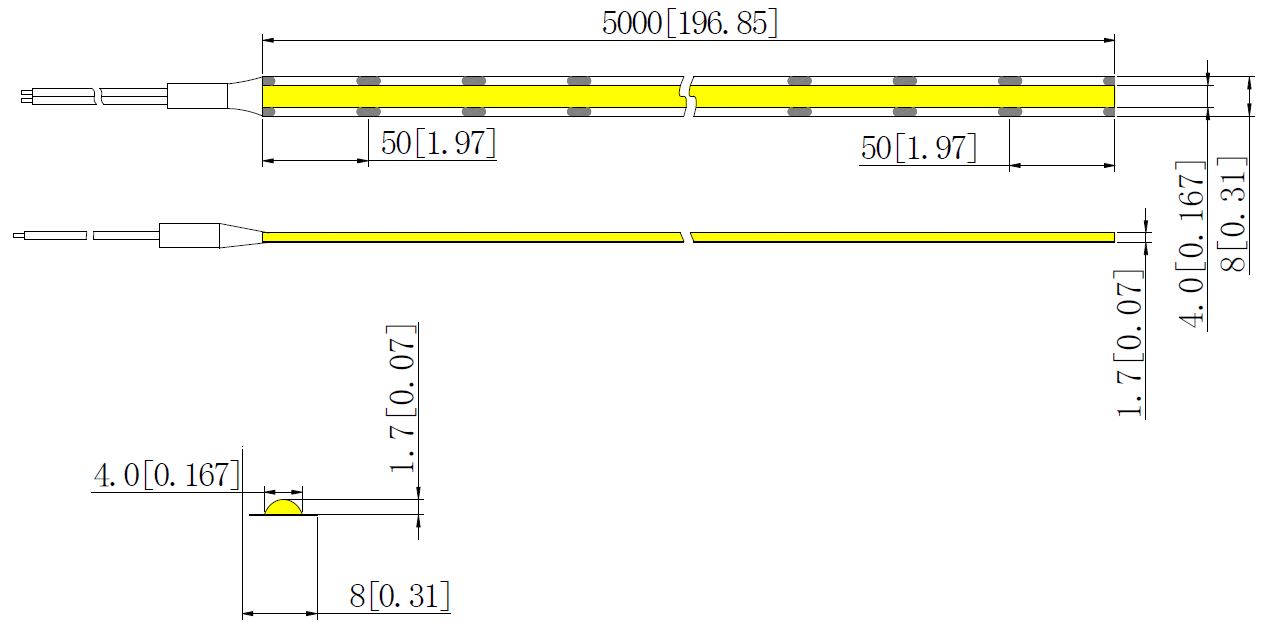 - Przewód lutowany z jednej strony taśmy, 200 mm.