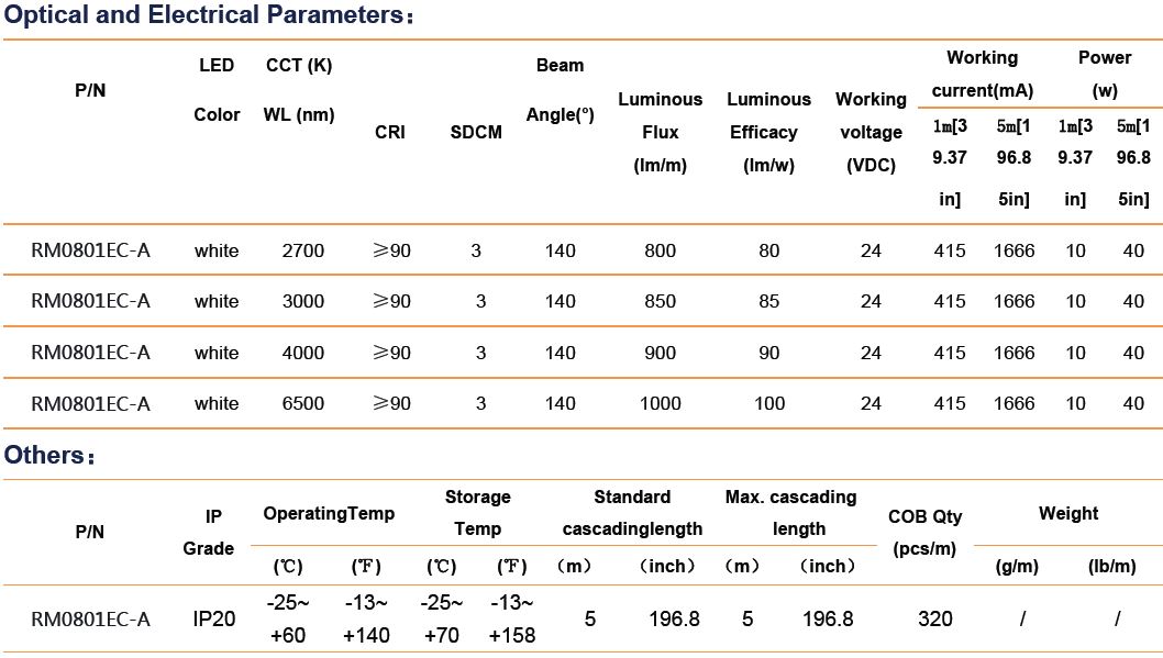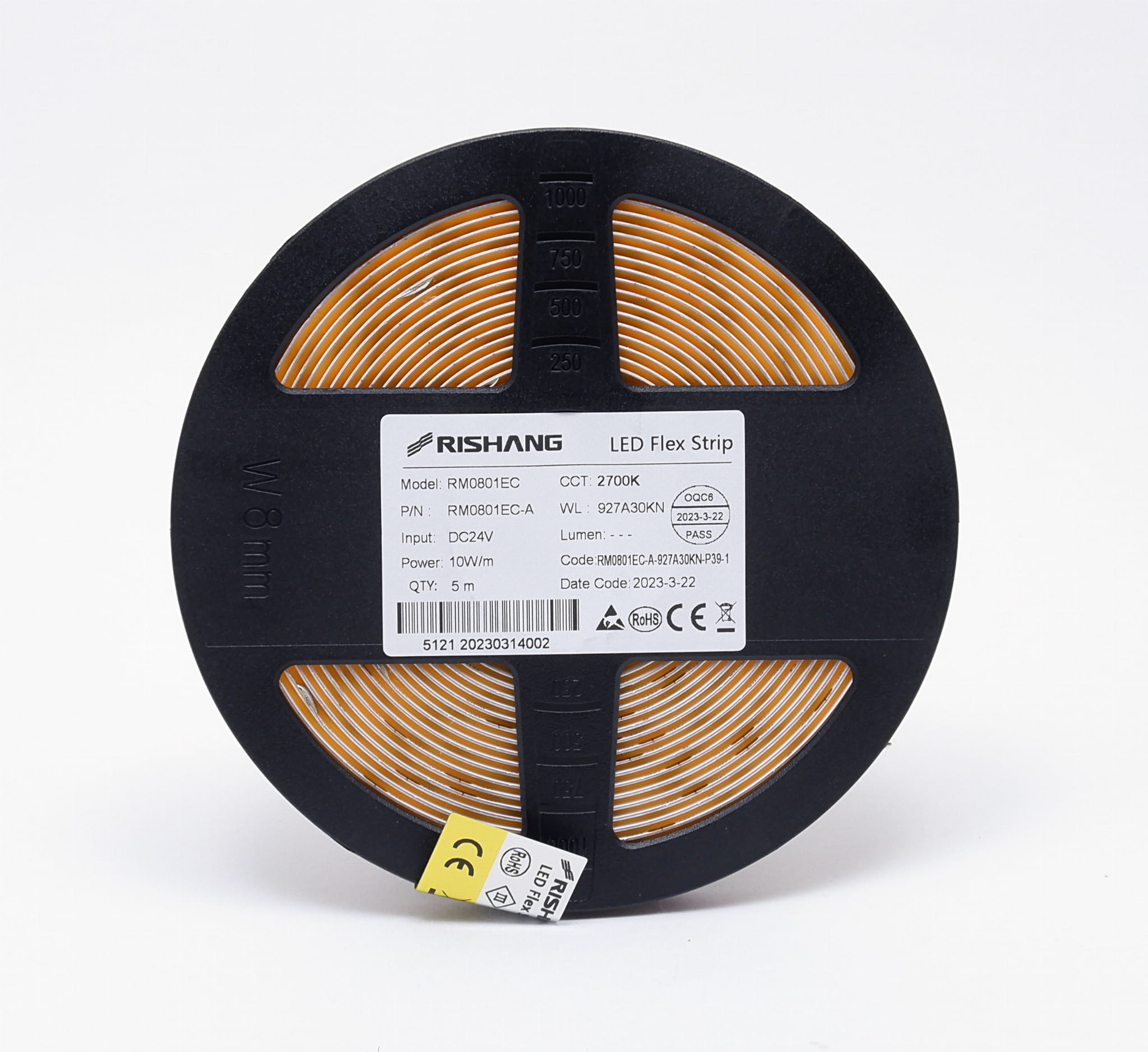 Taśma LED 24V COB IP20 Ciepła Biała 2700K 320LED 10W CRI90 RM0801EC-A RISHANG