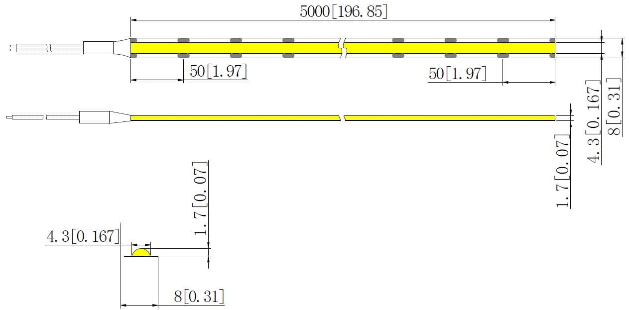 - Przewód lutowany z jednej strony taśmy, 200 mm.