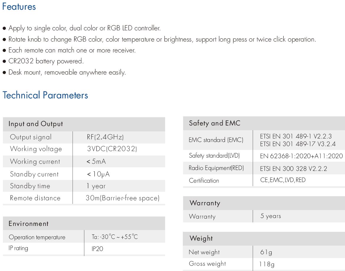RK1 Panel RF Ściemniacz LED Obrotowy 1-Strefowy