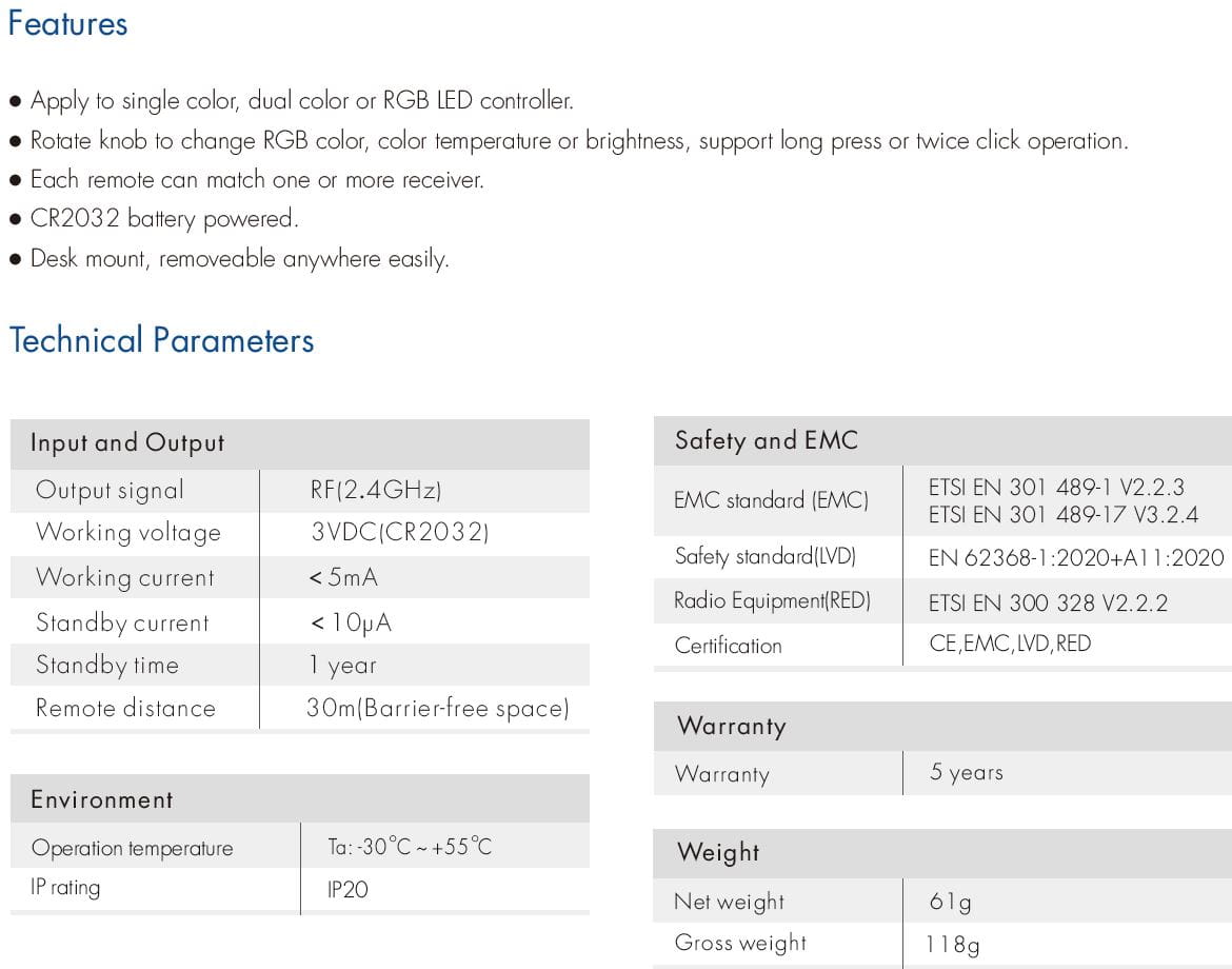 • Możliwość parowania do 10 pilotów radiowych z jednym sterownikem RF. Daje to możliwość sterowania jednym kontrolerem z kilku różnych lokalizacji.