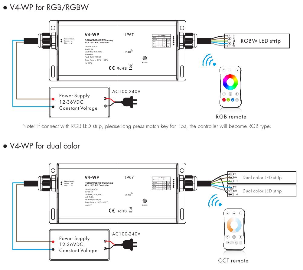 - Jest kompatybilny z całą gamą różnego rodzaju pilotów zdalnego sterowania, panele naścienne RF DIM/CCT/RGB/RGBW. Dostępne na innych naszych aukcjach.