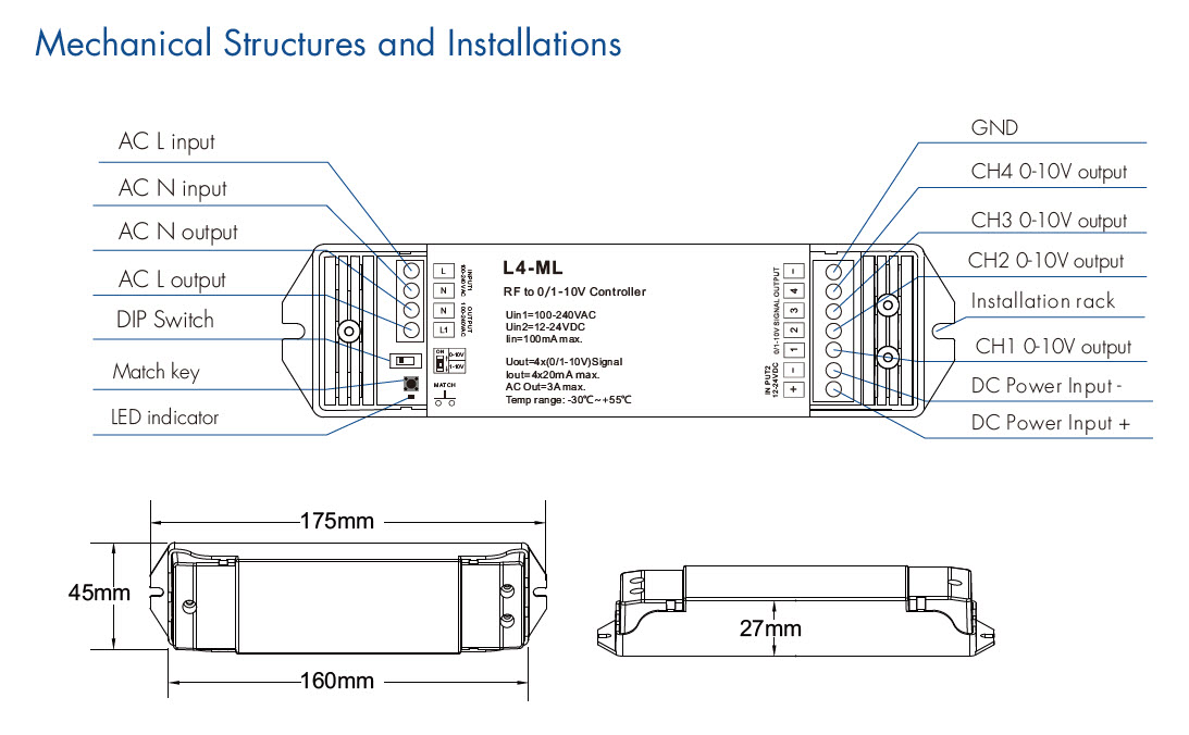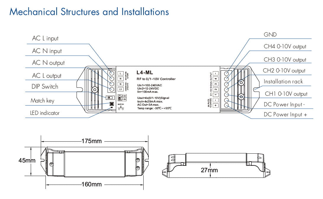 L4-ML Ściemniacz LED RF to 0/1-10V 4CH Odbiornik