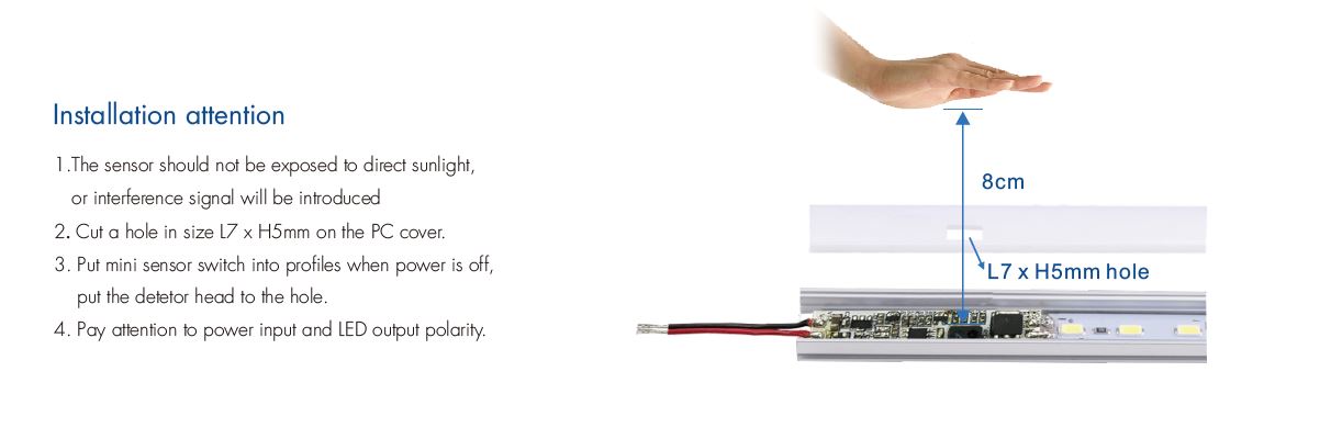 Jedno-wyjściowy bezdotykowy przełącznik LED E1-B służy do włączania oraz wyłączania jednokolorowej taśmy LED poprzez ruch (np. dłoni) w zasięgu pracy czujnika.