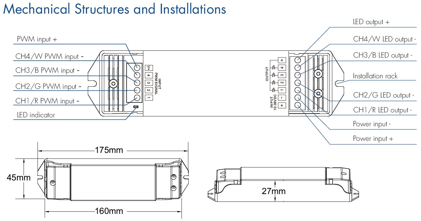 Power Repeater, Power Amplifier, WZMACNIACZ LED mono/CCT/RGB/RGBW