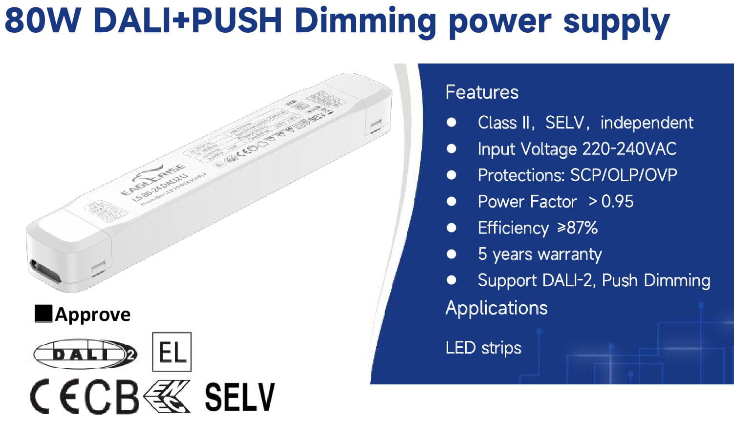 Zasilacz LED meblowy IP20 24V 80W PFC LS-80-24DALI2 LI (Push Dim AC230) EAGLERISE 5 lat gwarancji