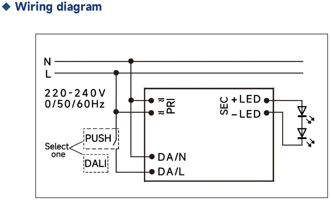 Funkcja ściemniania: DALI-2 + Push Dim Button (230VAC)