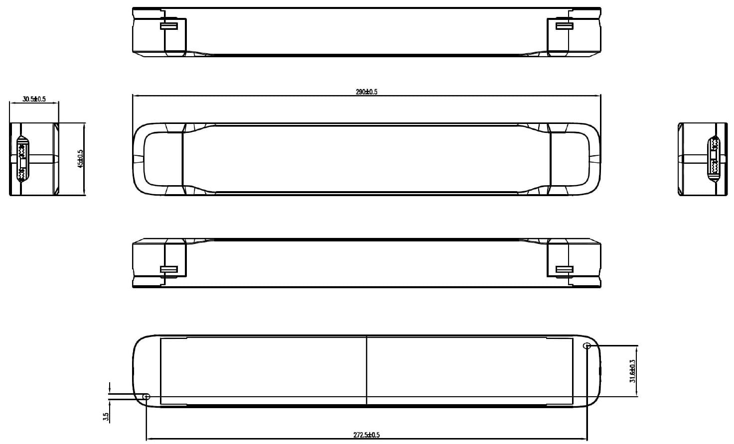 Wymiary zewnętrzne: 365 x 30 x 18 mm (LxWxH)