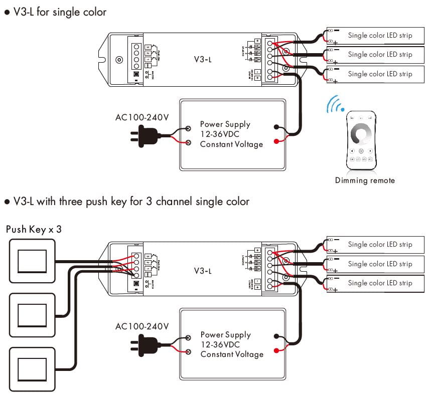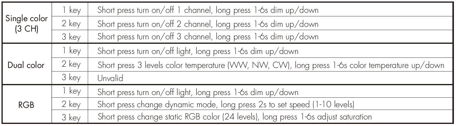 - Sterowanie RF, Push Key x 3 (przewodowe)