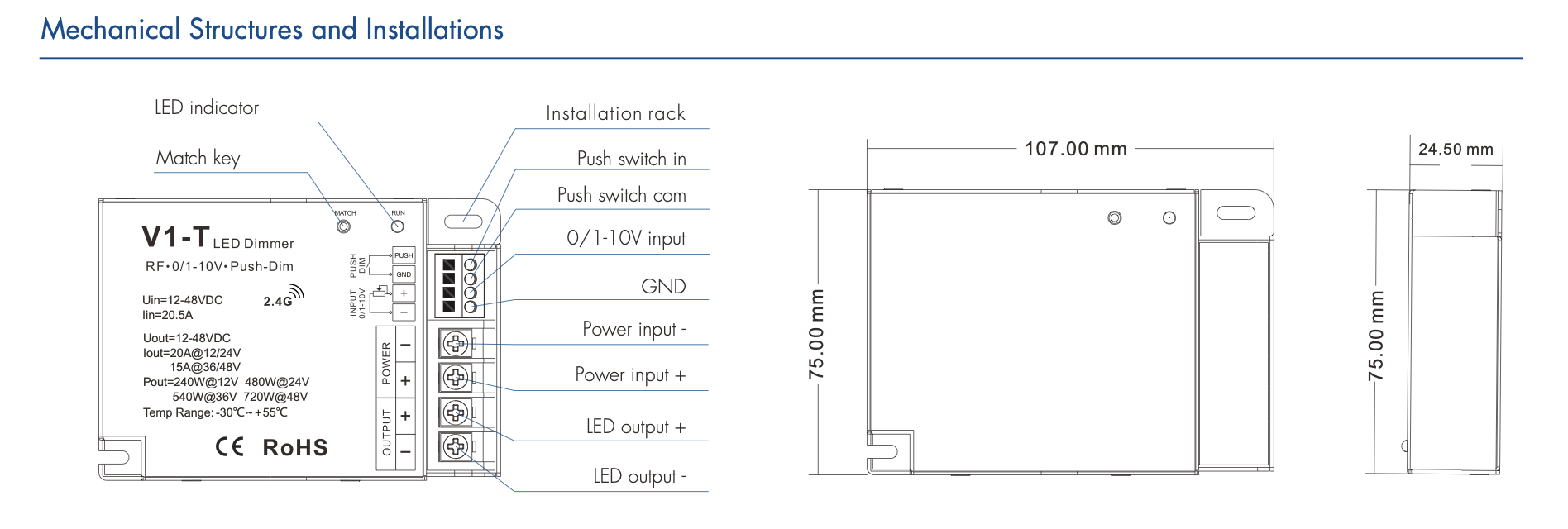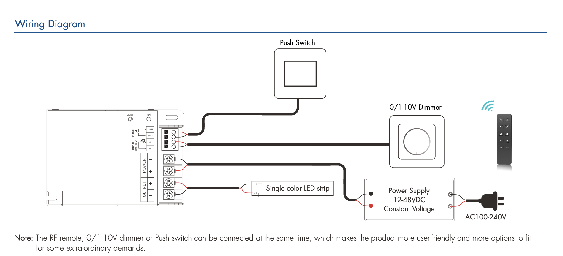 V1-T Ściemniacz LED 3-w-1 Odbiornik RF, PushDim, 0/1-10V SKYDANCE
