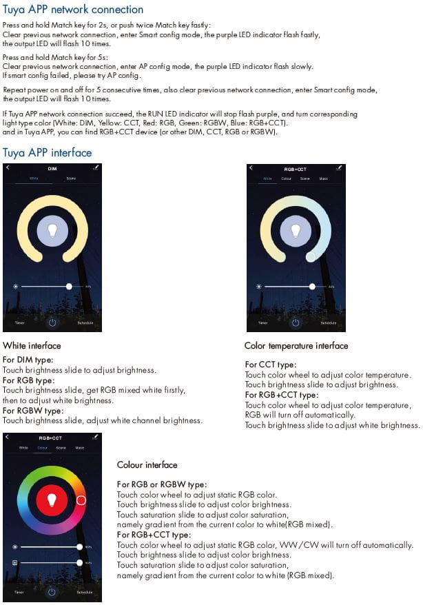 Sterownik może posłużyć jako urządzenie autonomiczne (nie wymaga pilota!) poprzez łączność z modemem/routerem WiFi, za pomocą platformy Tuya Smart, lub współpracować z pilotami, lub naściennymi nadajnikami RF.