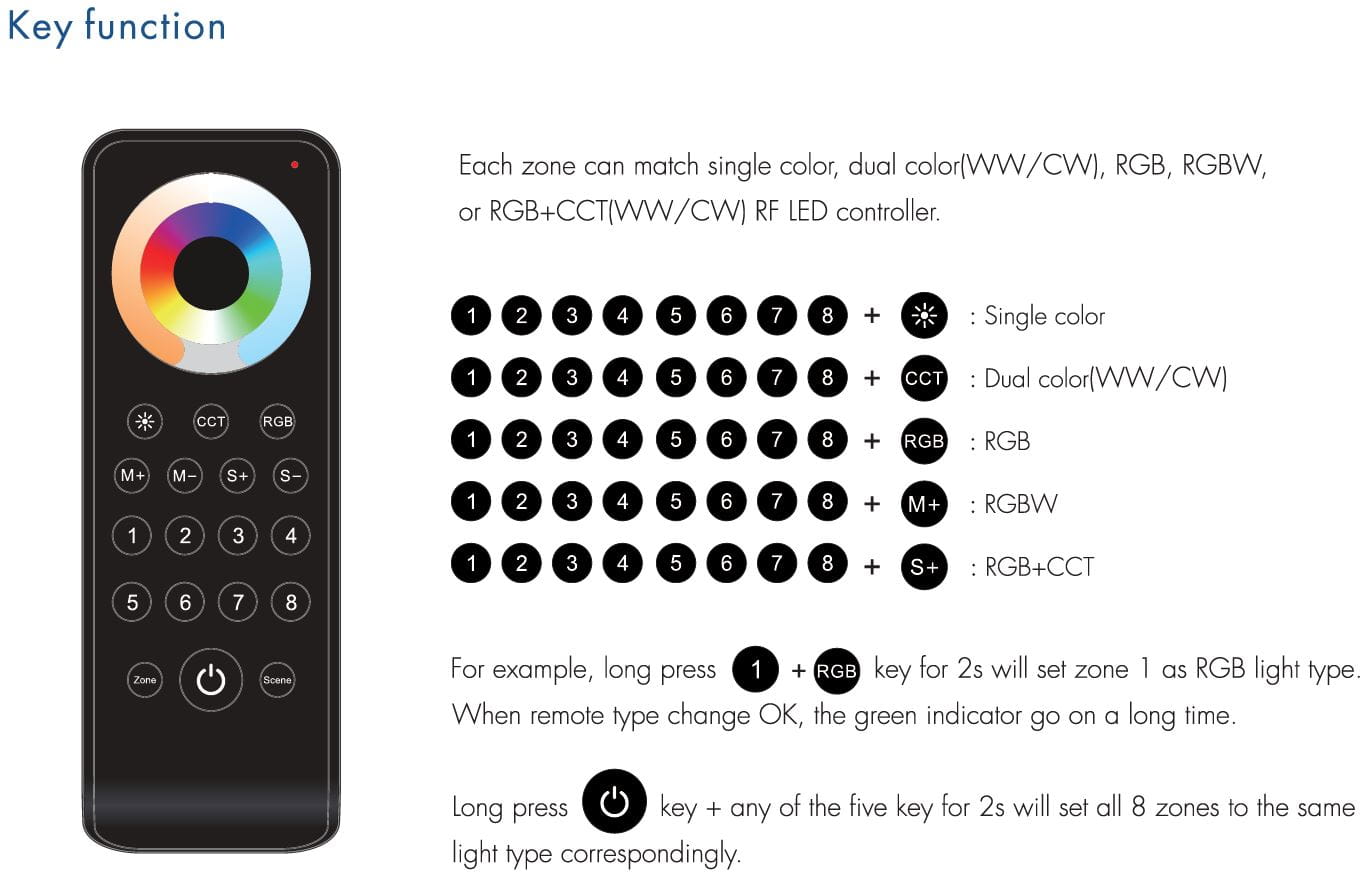 RS10 Pilot RF LED RGB+CCT 8-Strefowy