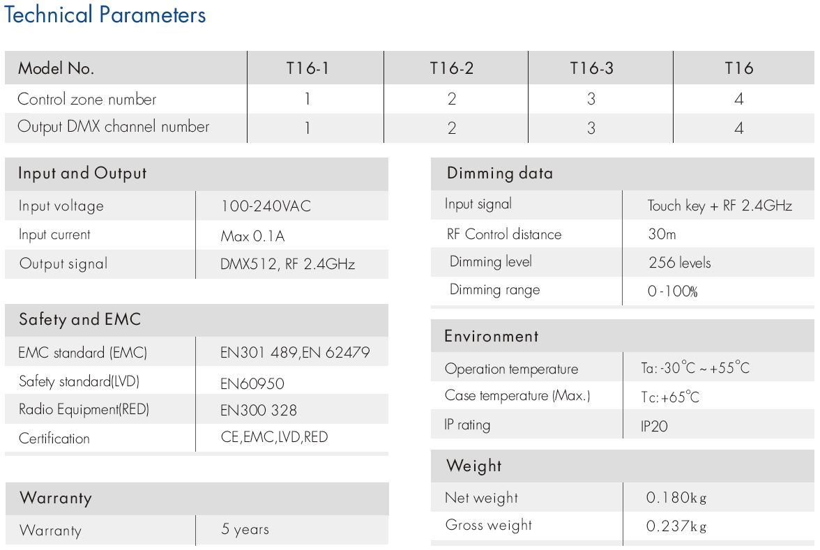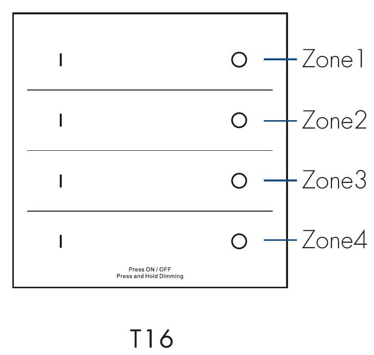 T16(B) Panel RF + DMX512 Ściemniacz Dotykowy 4-Strefowy