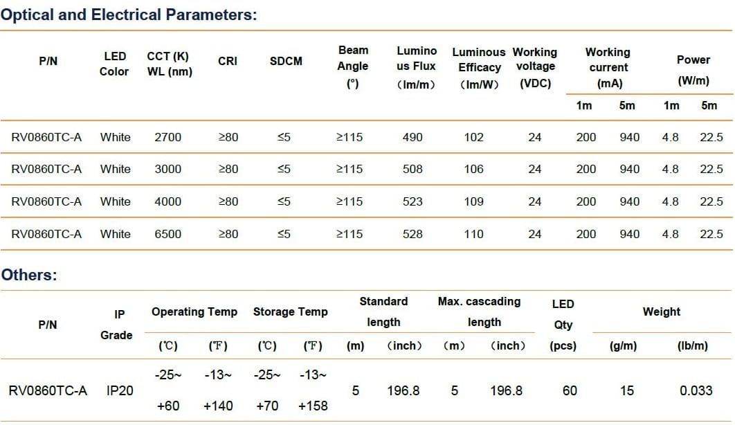 Taśma LED 24V IP20 Ciepła Biała 2700K 60LED 4,8W RV0860TC-A RISHANG