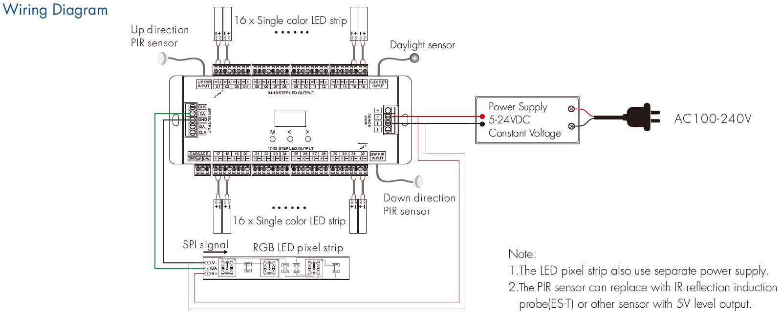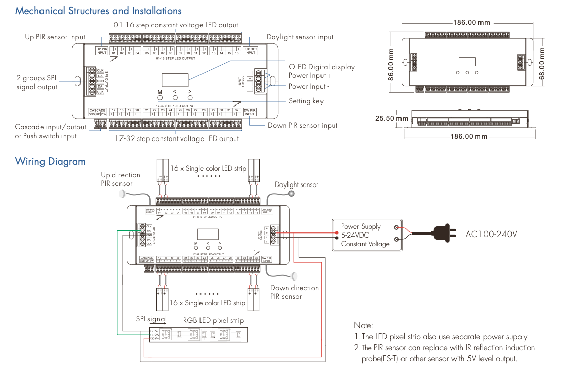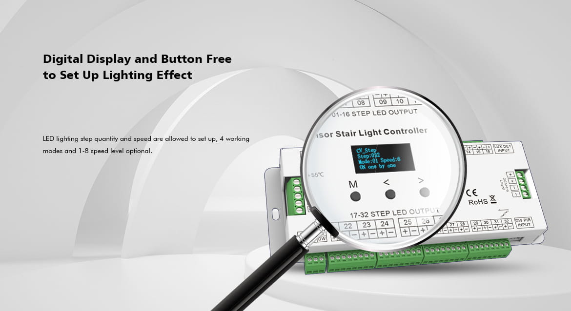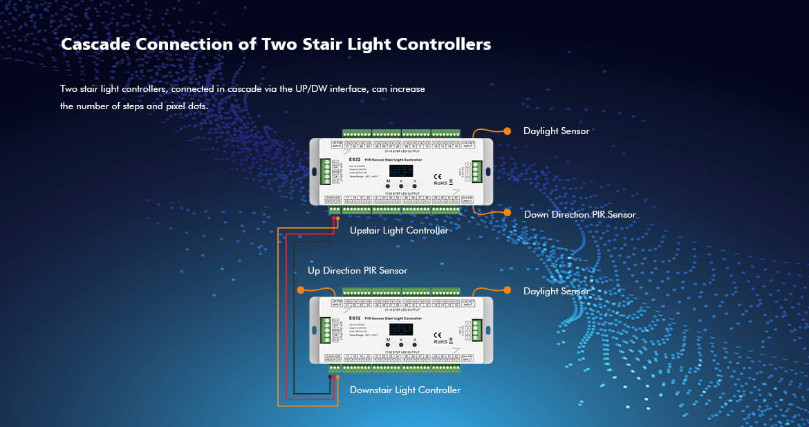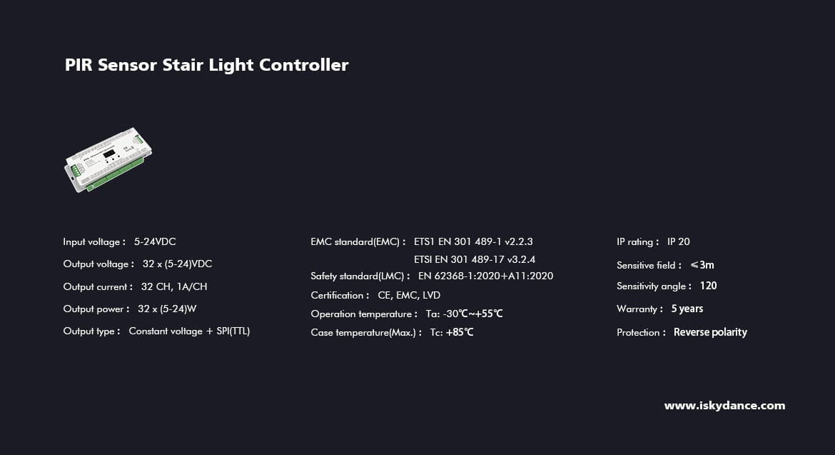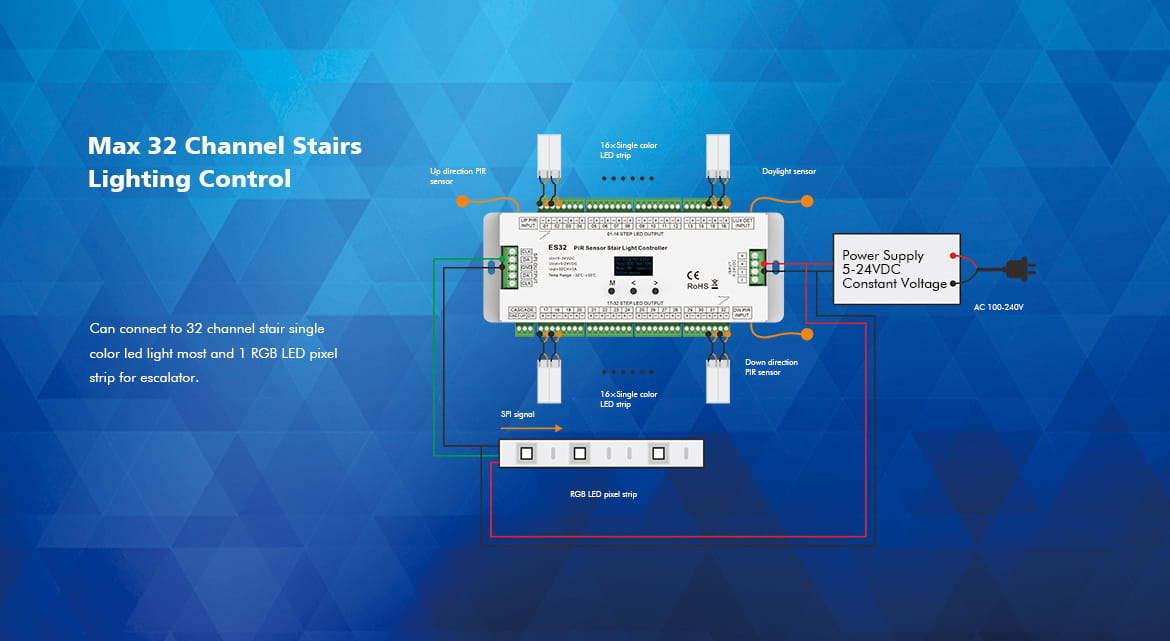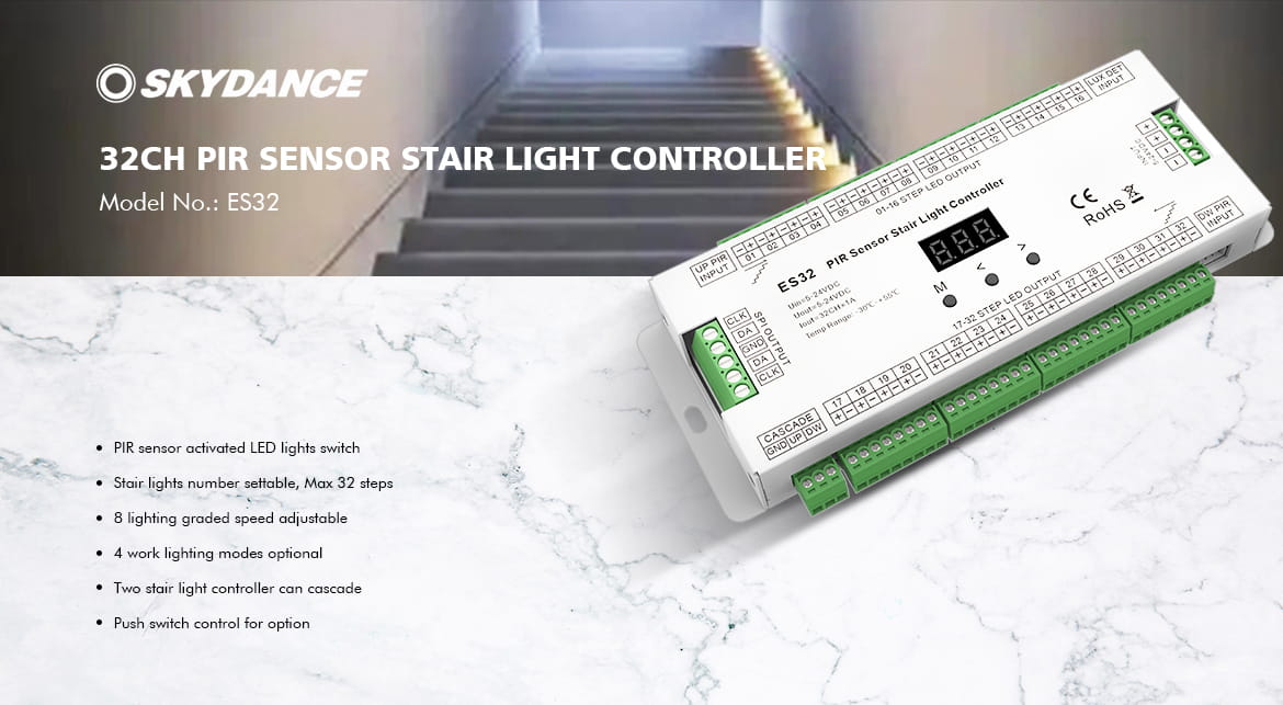 ES32 Sterownik LED Schodowy z dwoma czujkami PIR, do taśm cyfrowych (2xSPI) oraz taśm jednokolorowych 32CH x 1A GW5 SKYDANCE