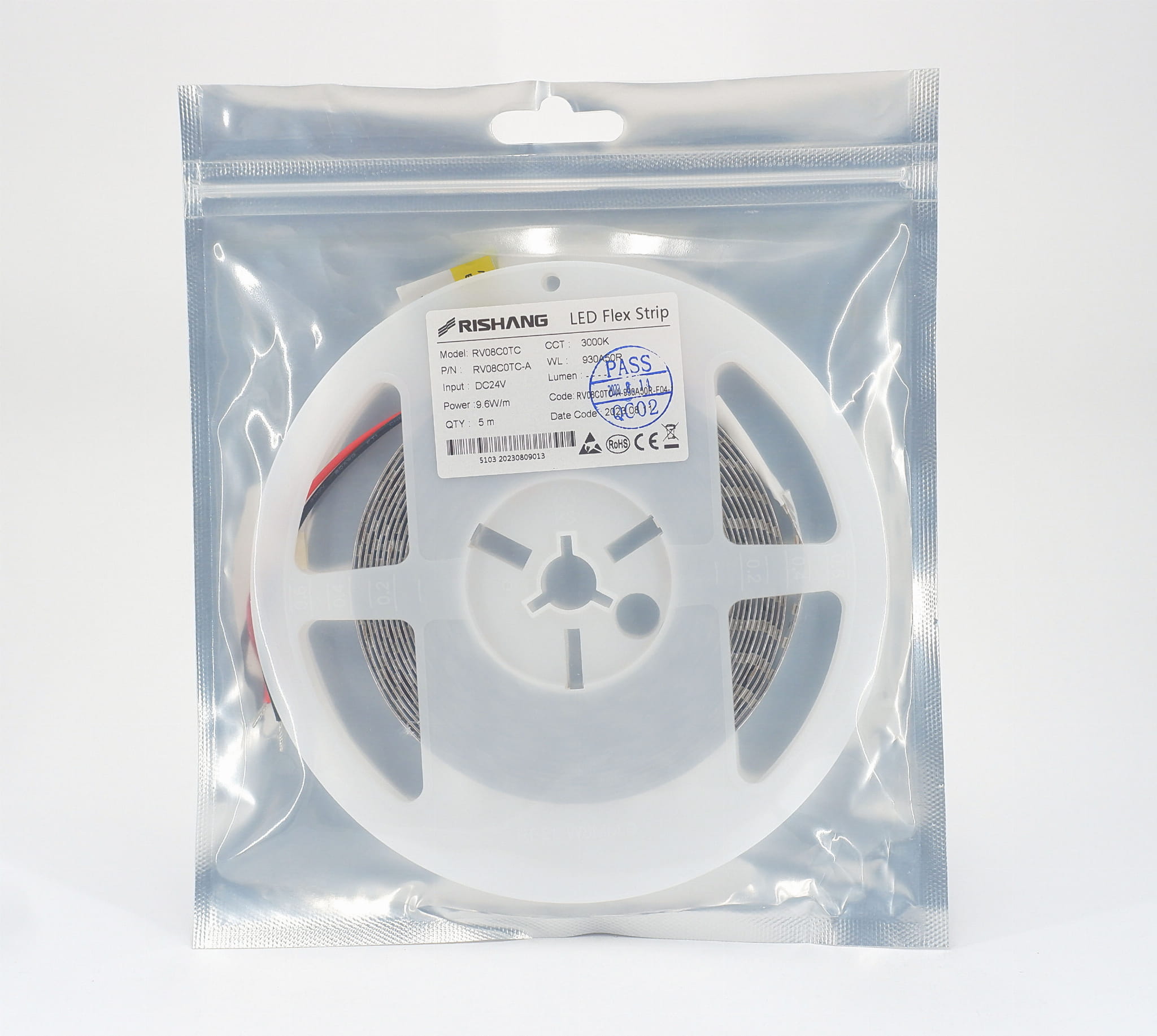 Taśma LED 24V IP20 Ciepła Biała 3000K 120LED 9,6W CRI90 RV08C0TC-A RISHANG