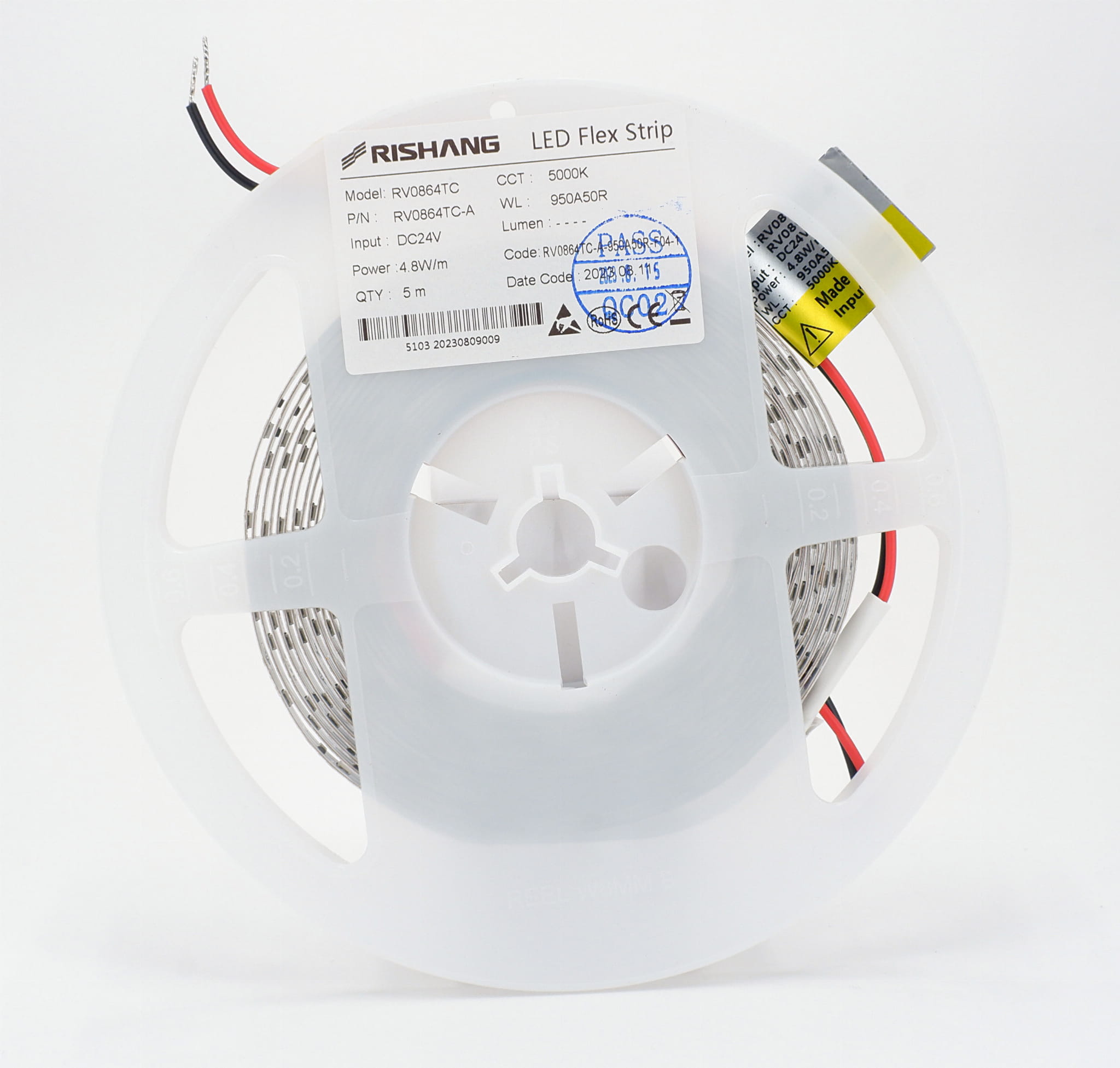 Taśma LED 24V IP20 Dzienna Biała 5000K 64LED 4,8W CRI90 RV0864TC-A RISHANG gwarancja 5 lat