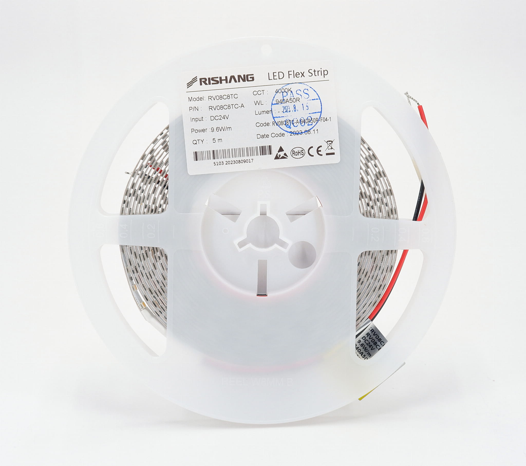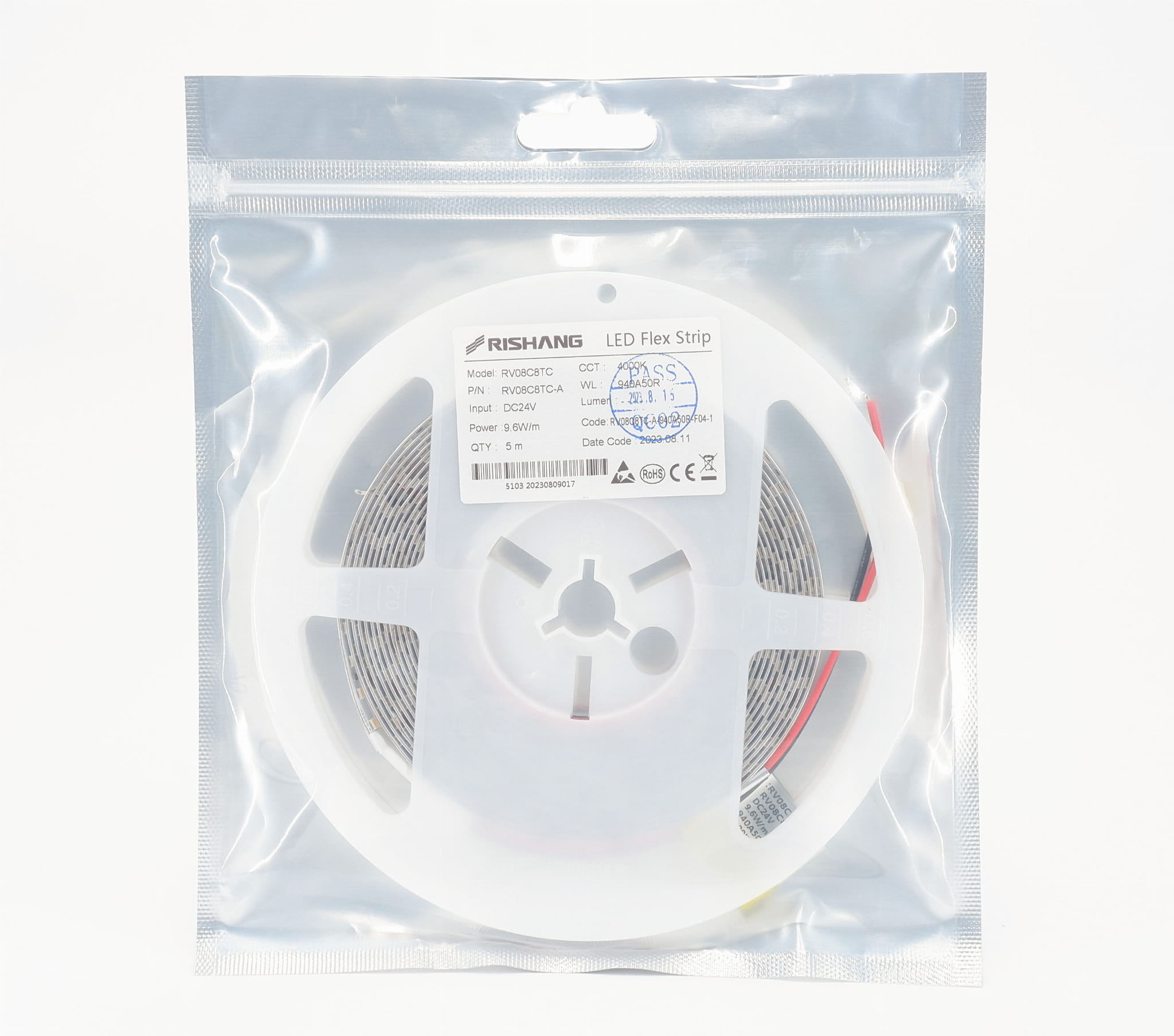 Taśma LED 24V IP20 Neutralna Biała 4000K 128LED 9,6W CRI90 RV08C8TC-A RISHANG 5 lat gwarancji