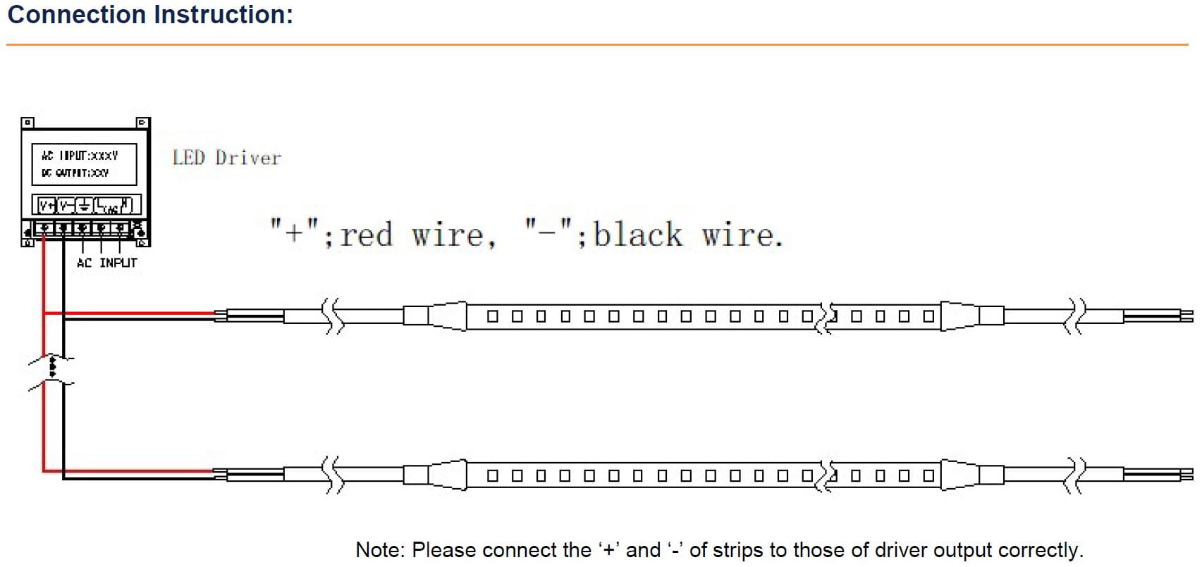 Preferowany sposób podłączenia: Połączenie dwustronne rolki 5m, z jednej strony nie więcej 5m taśmy LED.