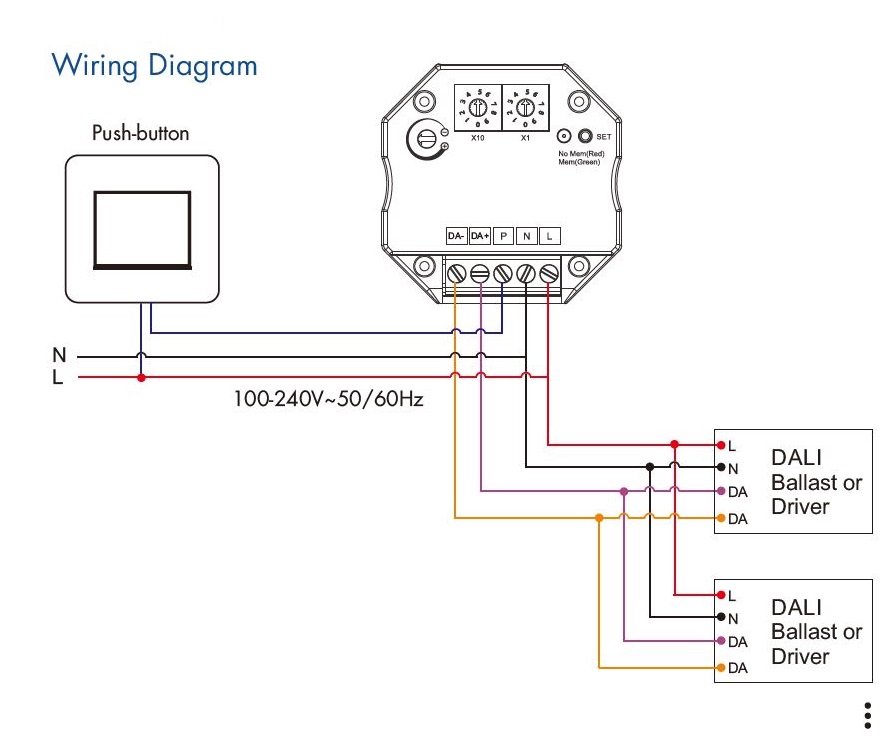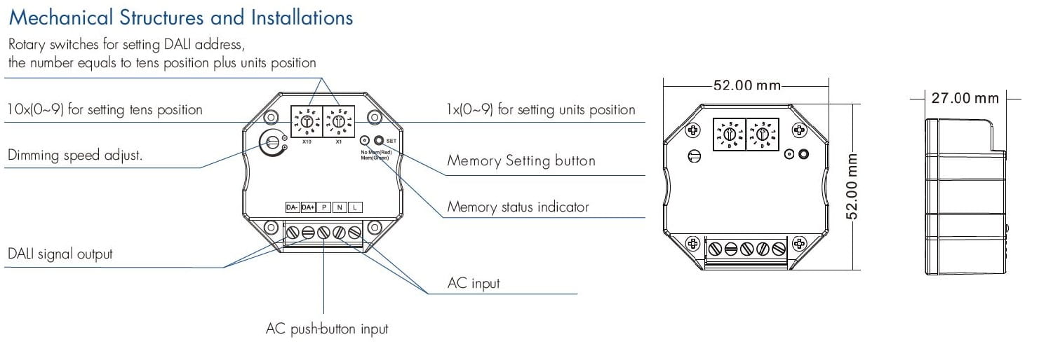 DA-P Sterownik DALI Ściemniacz Push Dim