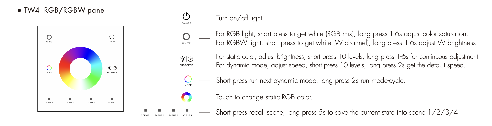 TW4(B) Panel RF LED RGB/RGBW Dotykowy 1-Strefowy Bat
