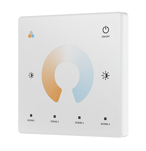 - Panel dotykowy 1-strefowy, 2 kolorowy CCT, RF nadajnik.
