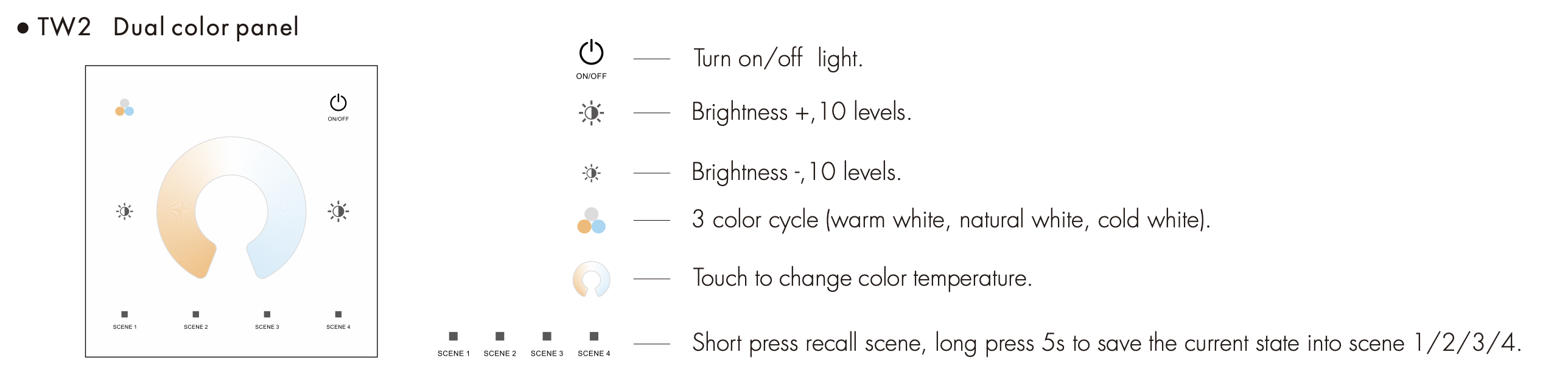 TW2(W) Panel RF LED CCT Dotykowy 1-Strefowy Bat