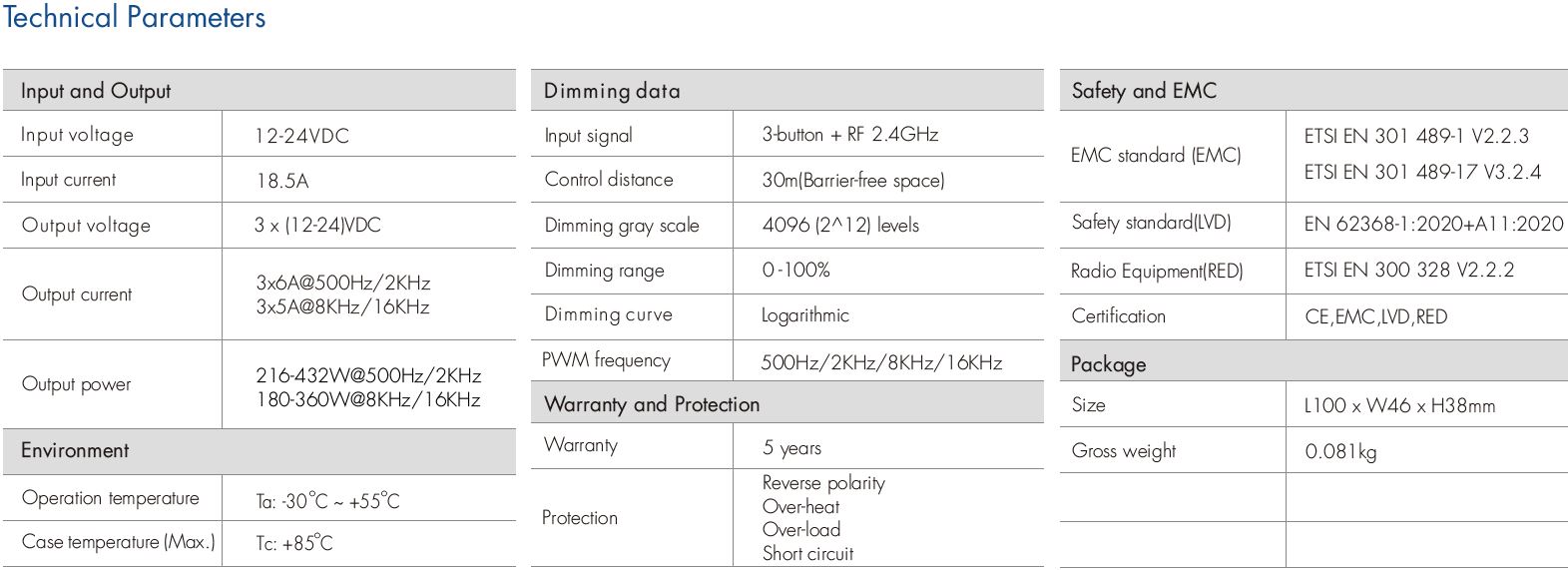 | Liczba kanałów | 3 CH |