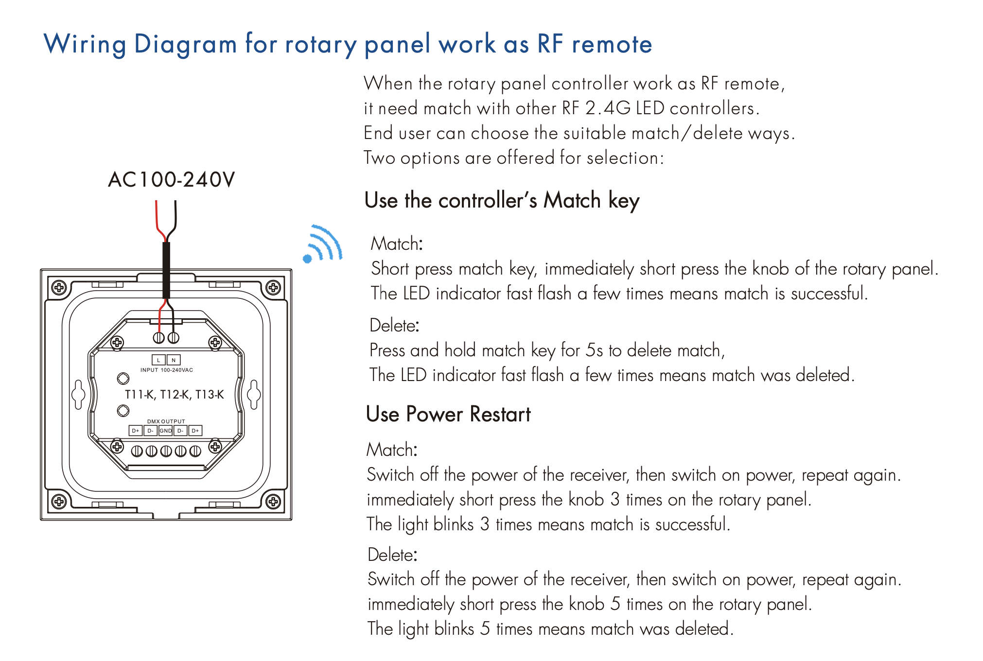 - W przypadku użycia jako pilot RF, może zdalnie sterować wieloma kontrolerami LED RF 2,4G