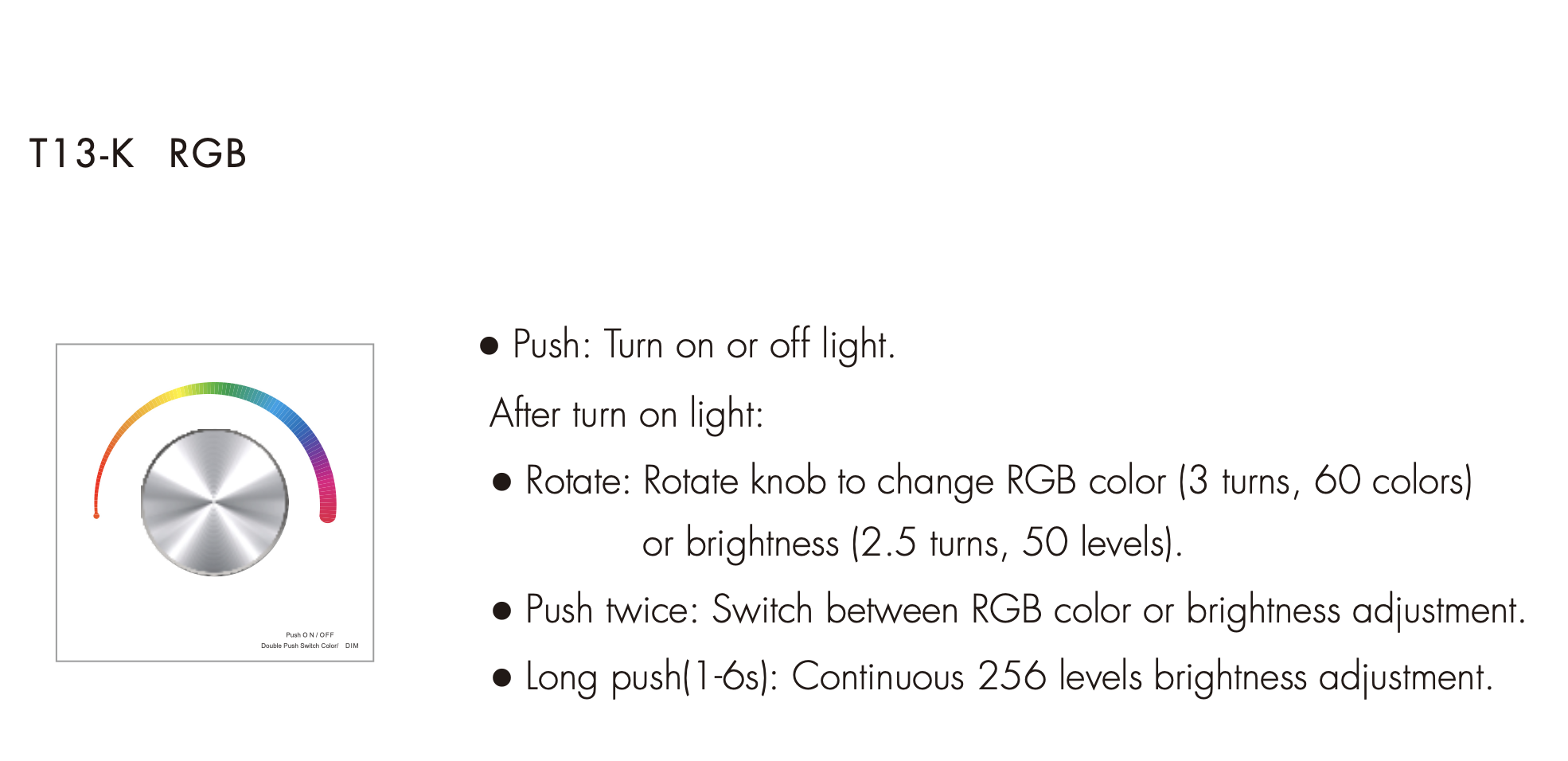 - Zmiana koloru RGB, temperatury barwowej lub jasności przy pomocy pokrętła