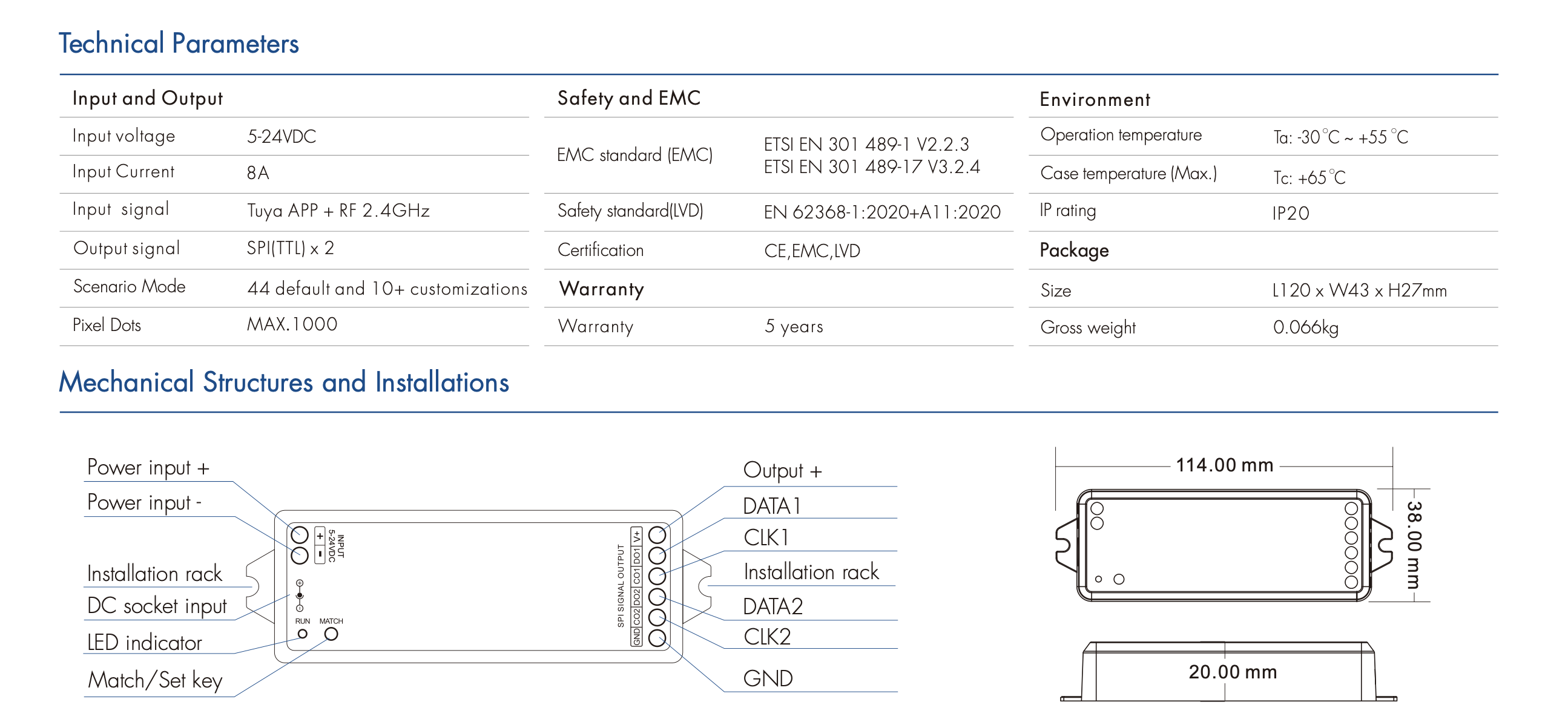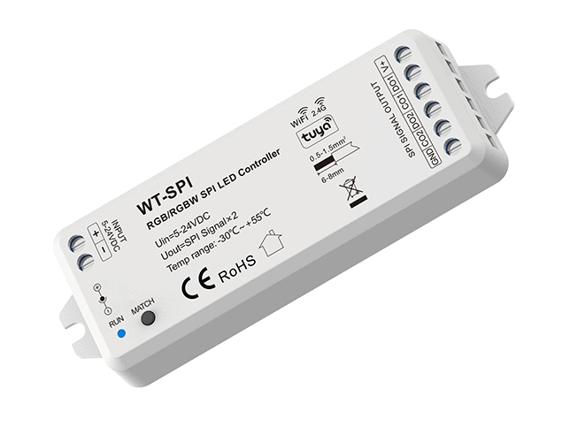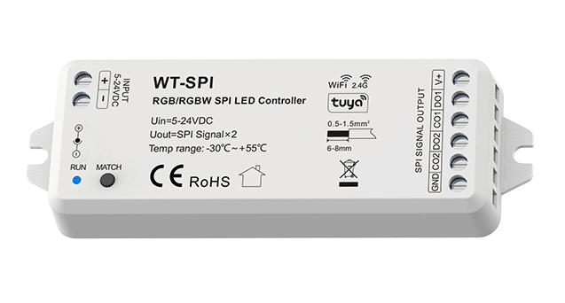 • Kontroler taśm LED RGB/RGBW z wyjściem sygnału SPI i sterowaniem w chmurze za pomocą aplikacji Tuya