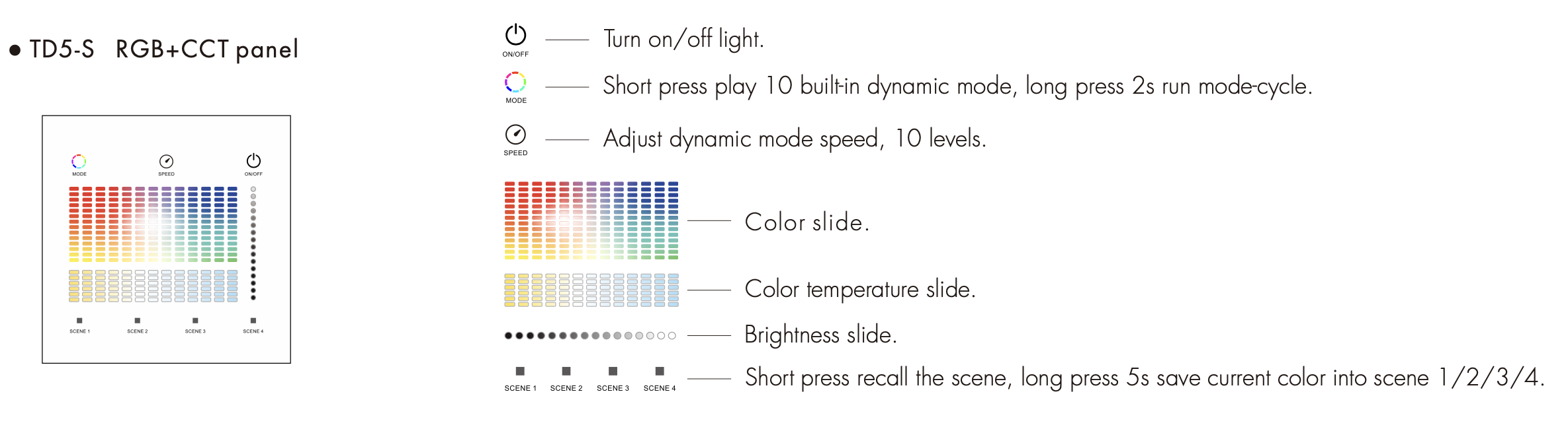 TD5-S(W) Panel LED DALI RGB+CCT Dotykowy&RF 24VDC 1-Strefowy