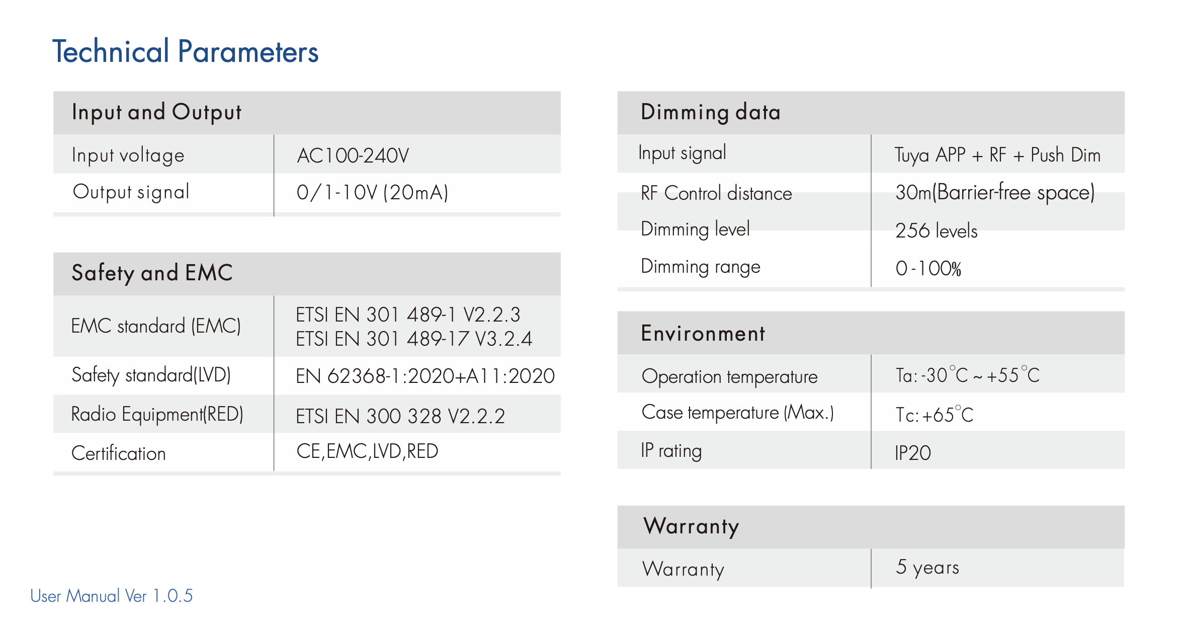 - Kompatybilność z RF 2.4G zdalnym sterowaniem do ściemniania w jednej lub wielu strefach.