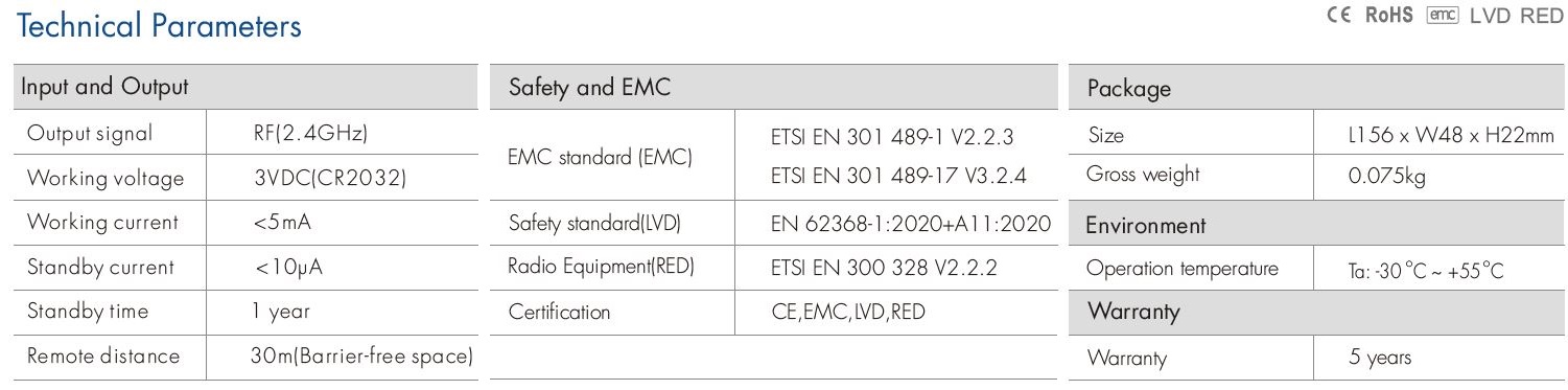 - Możliwość parowania do 10 pilotów radiowych z jednym sterownikem RF. Daje to możliwość sterowania jednym kontrolerem z kilku różnych lokalizacji.