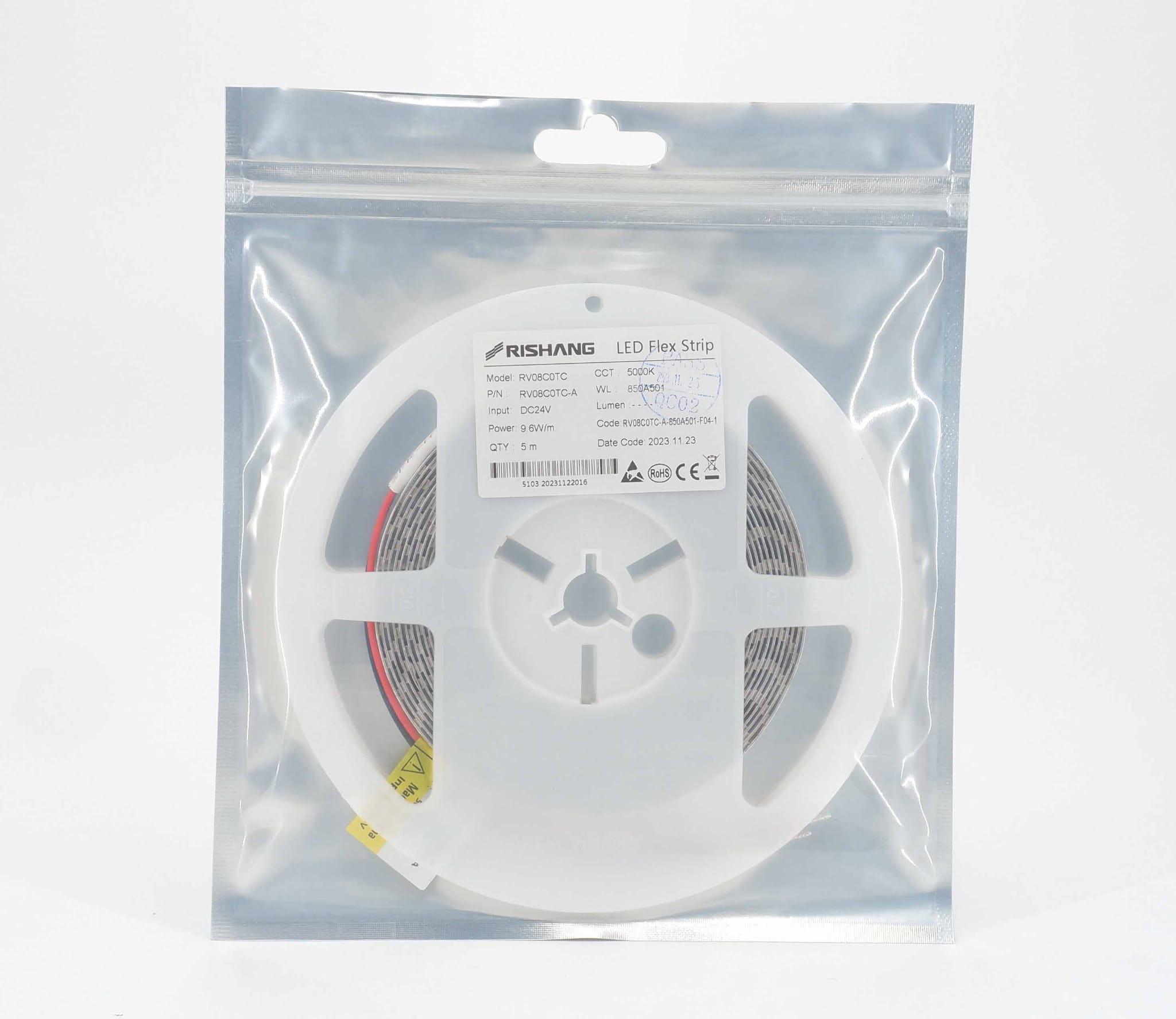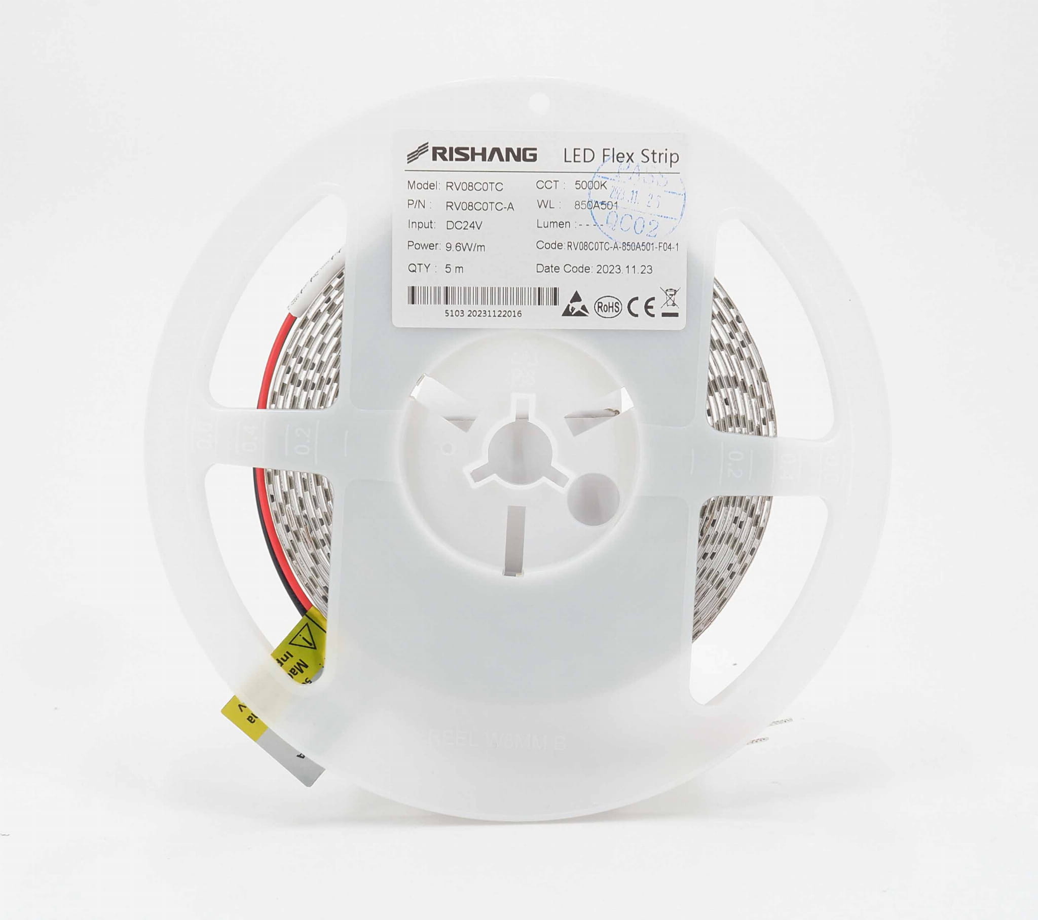 Taśma LED 24V Dzienna Biała 5000K 120LED 9,6W 8mm IP20 RV08C0TC-A RISHANG