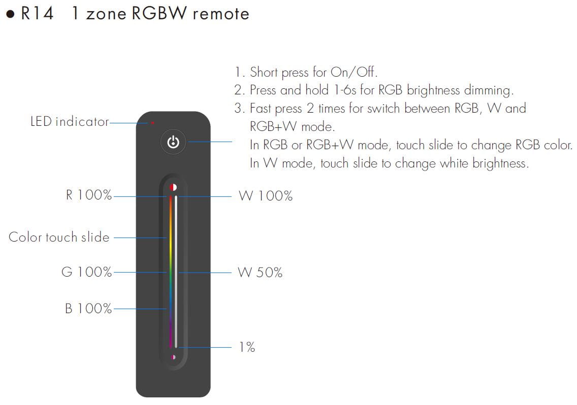 R14(W) Pilot RF LED RGBW 1-Strefowy Biały