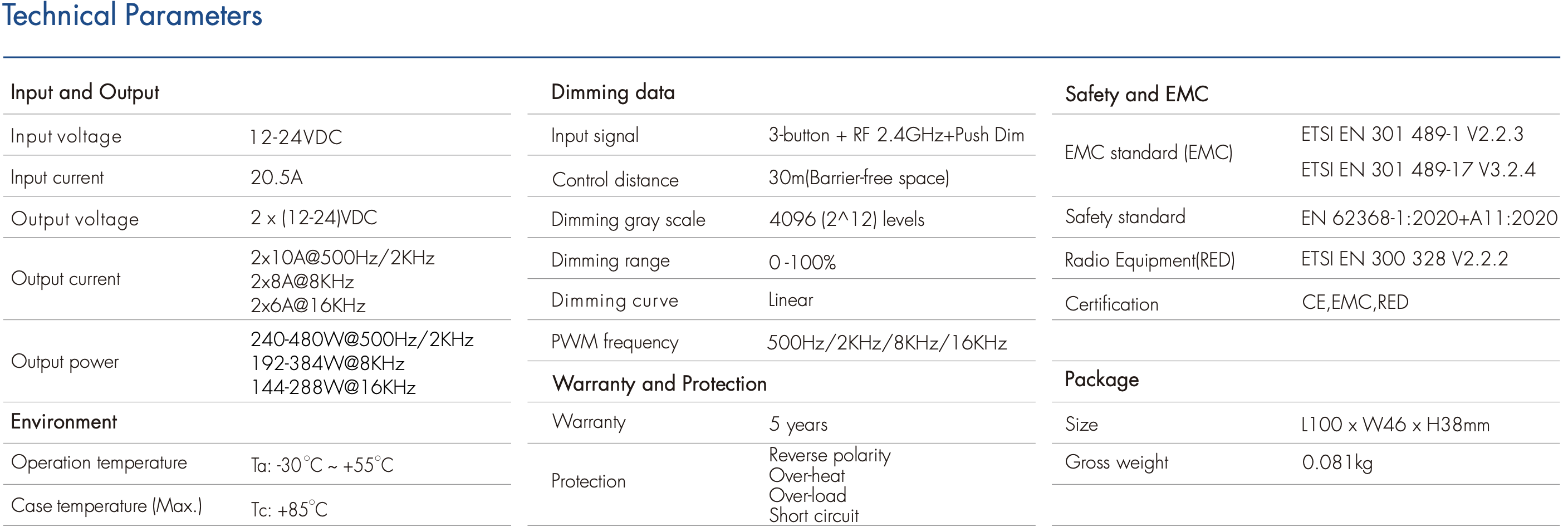 • Liczba kanałów wyjściowych: 2CH x 10A max