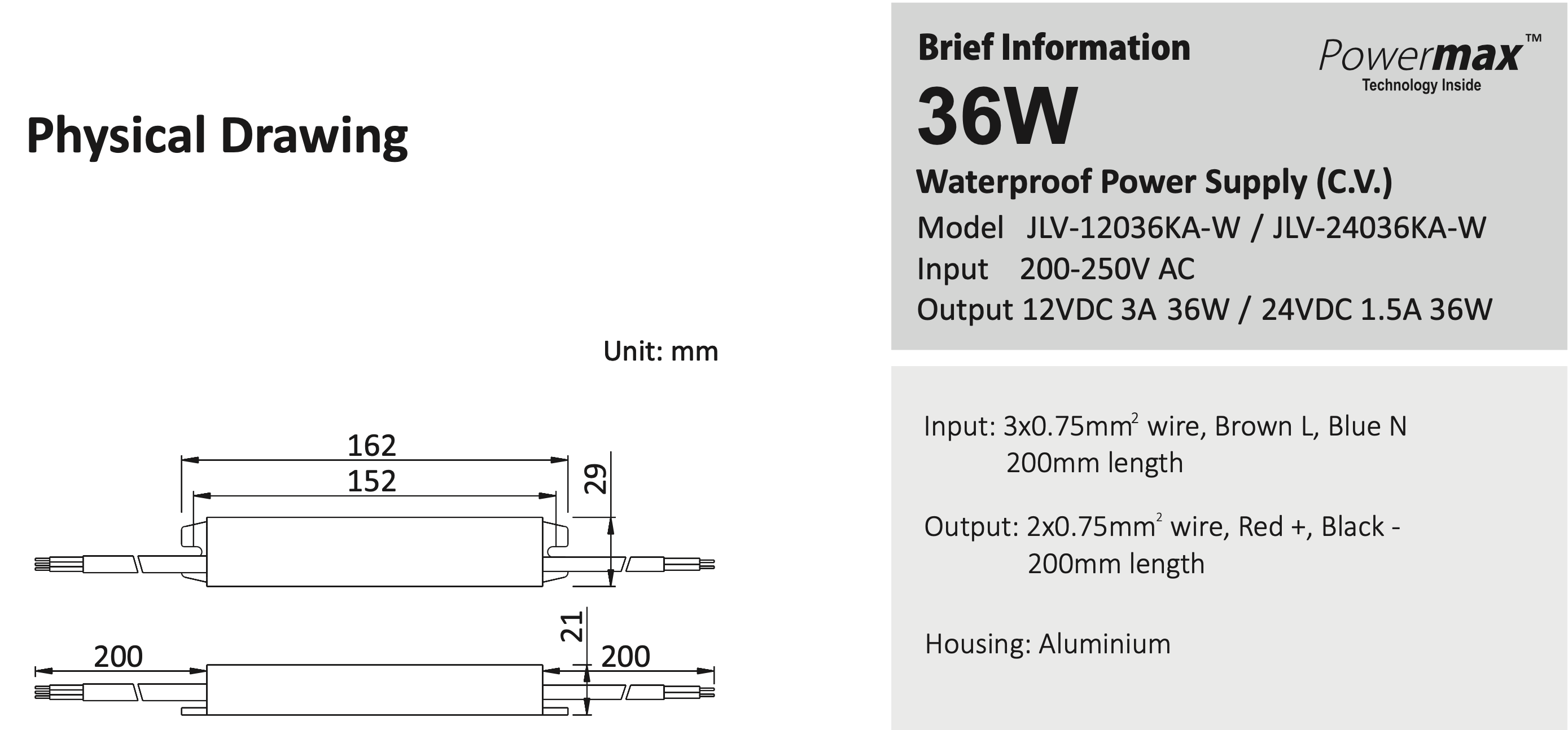 Zasilacz LED hermetyczny IP67 24V 36W JLV-24036KA-W JINBO 5 lat gwarancji