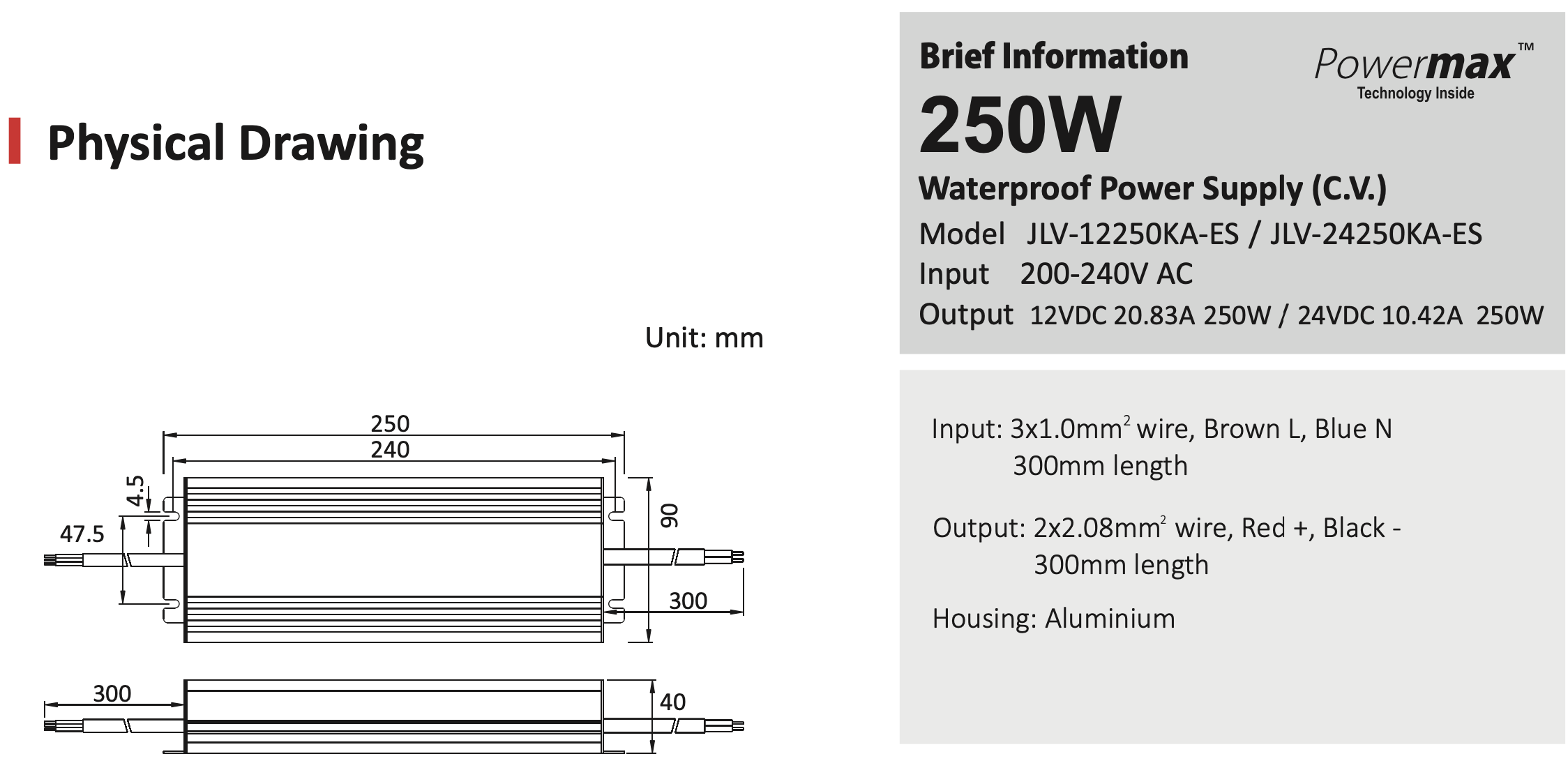 Zasilacz LED 250W | 24V | IP67 | JLV-24250KA-ES