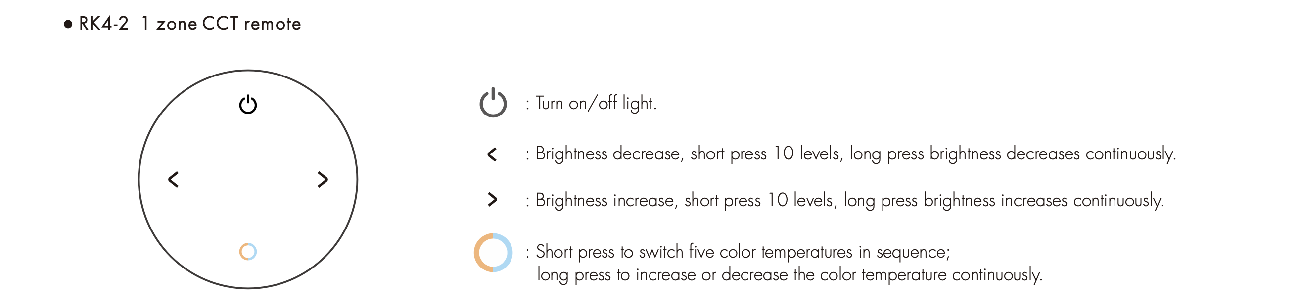 RK4-2 Panel-pilot RF CCT Ściemniacz LED 1-Strefowy