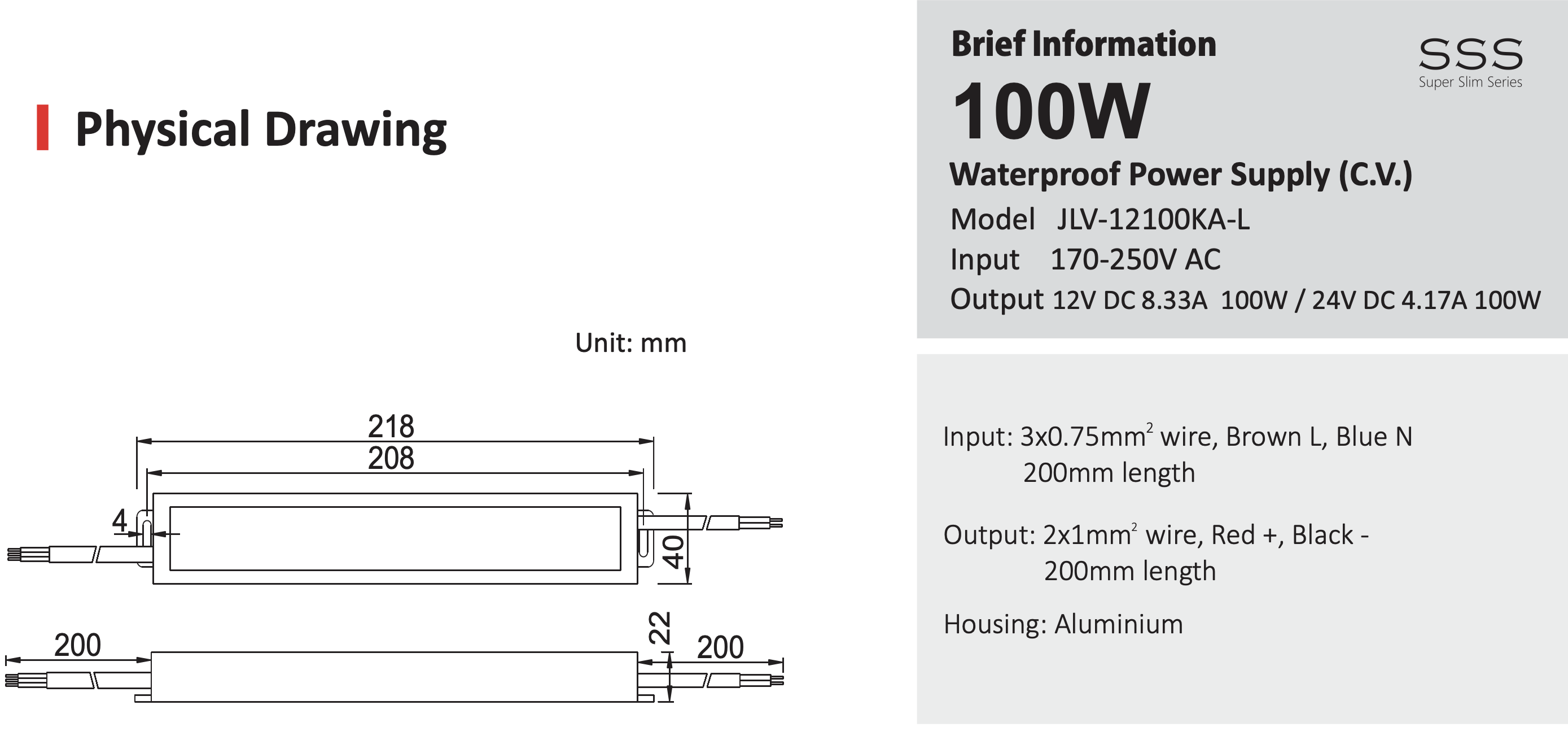 Zasilacz LED hermetyczny IP67 12V 100W JLV-12100KA-L JINBO 5 lat gwarancji