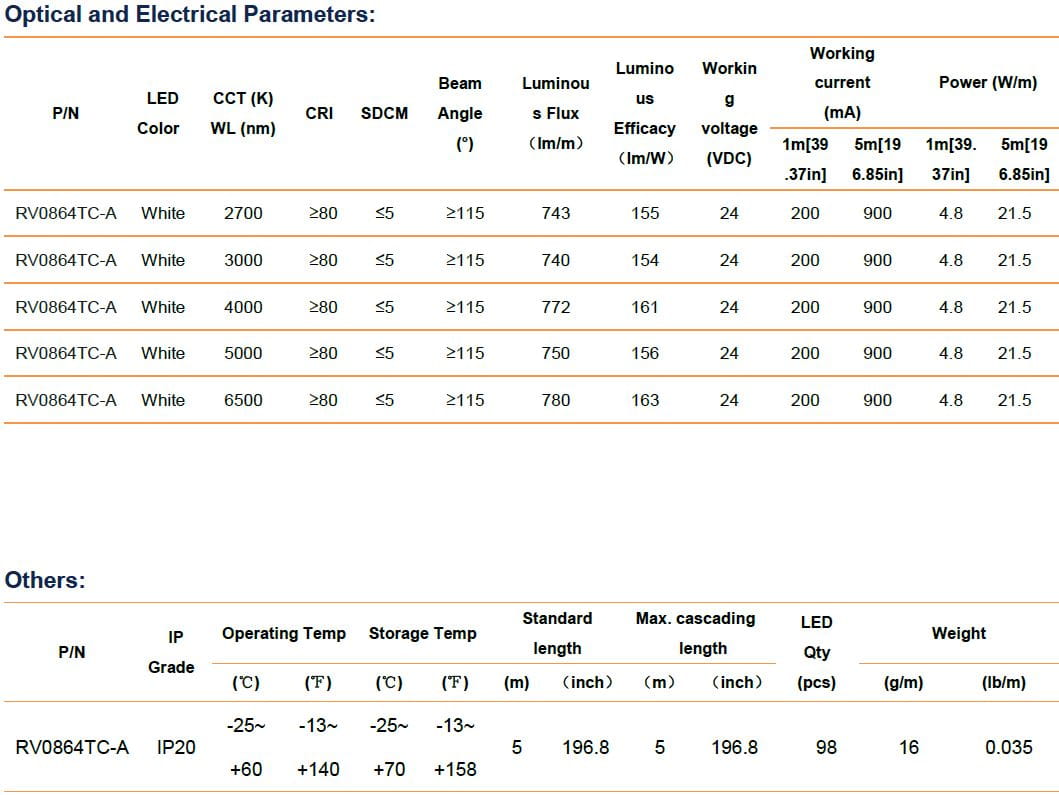 Taśma LED 24V IP20 Ciepła Biała 2700K 64LED 4,8W RV0864TC-A RISHANG gwarancja 5 lat