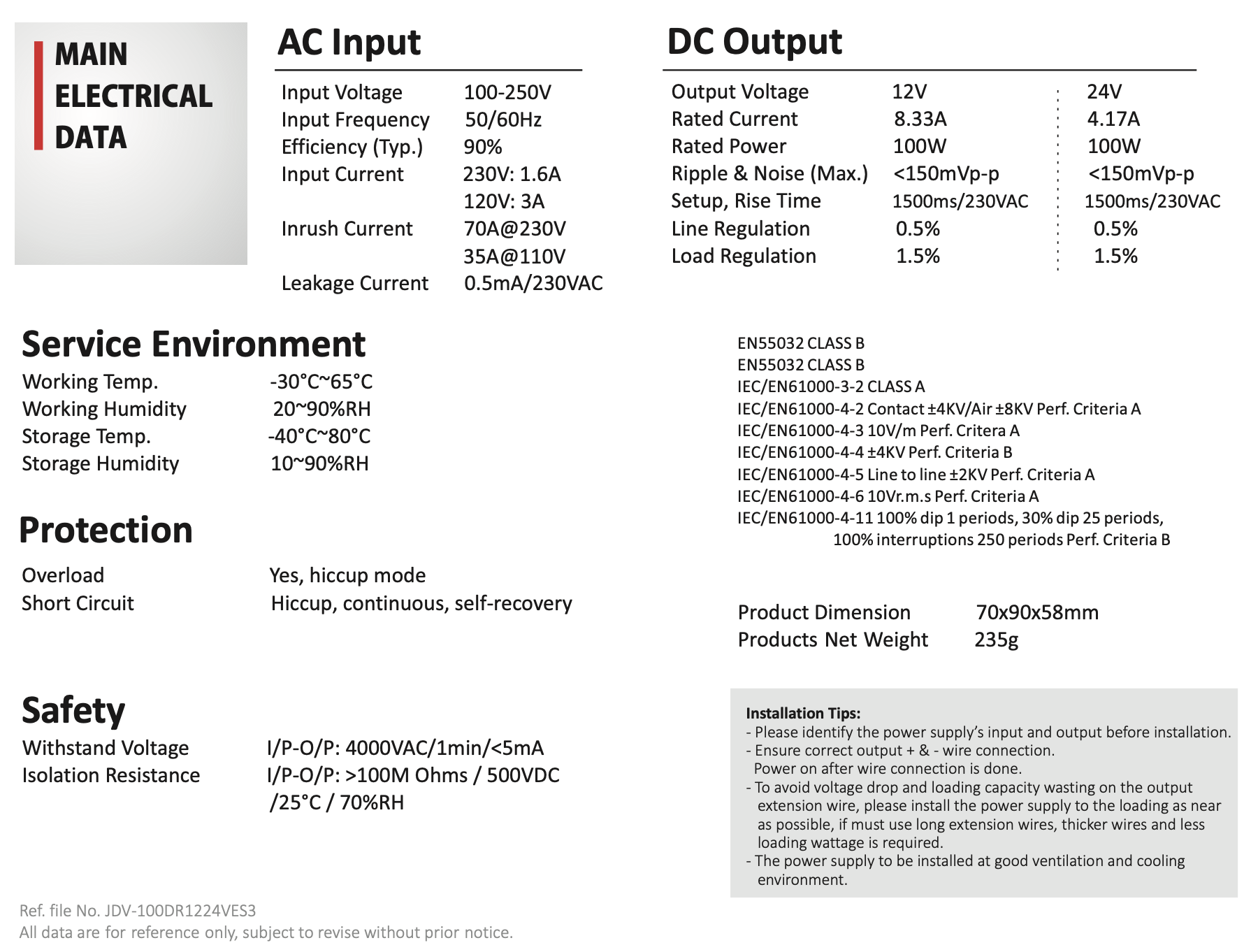 | Klasa szczelności | IP20 |