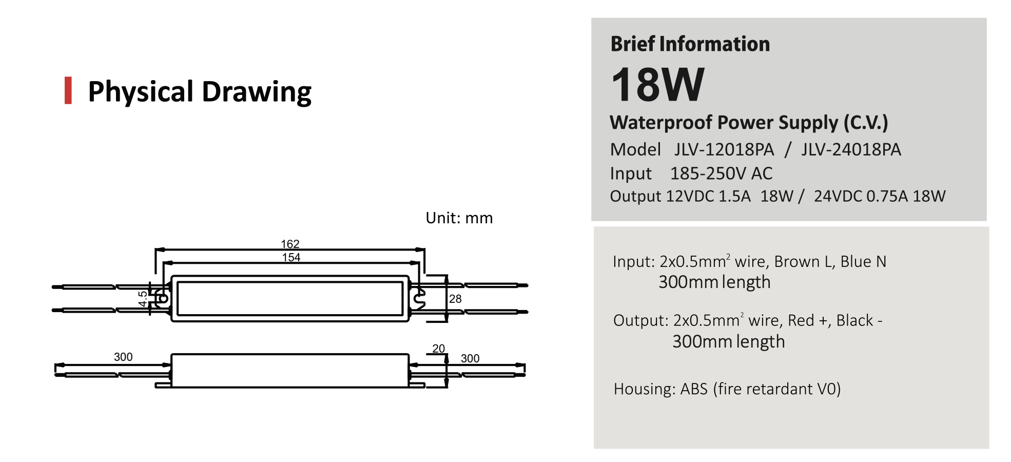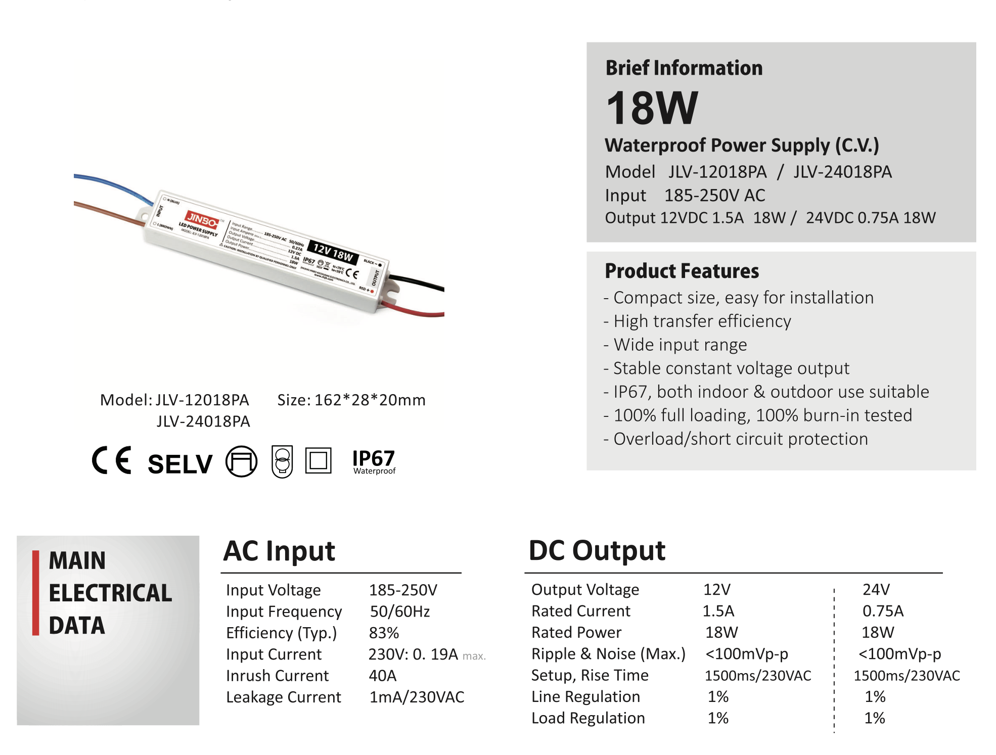 Zasilacz LED hermetyczny IP67 12V 18W JLV-12018PA JINBO 5 lat gwarancji