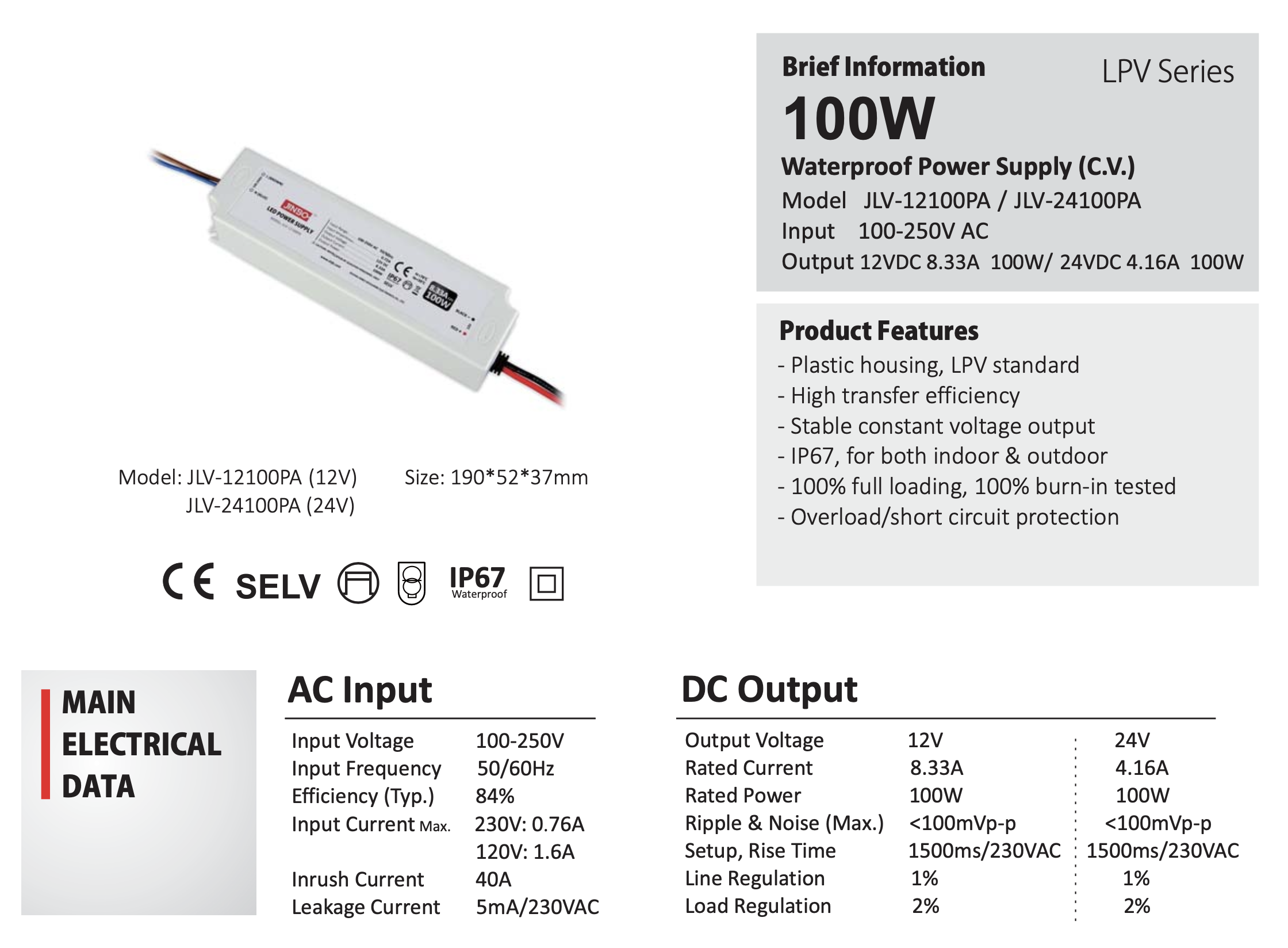 Zasilacz LED hermetyczny IP67 12V 100W JLV-12100PA JINBO 5 lat gwarancji