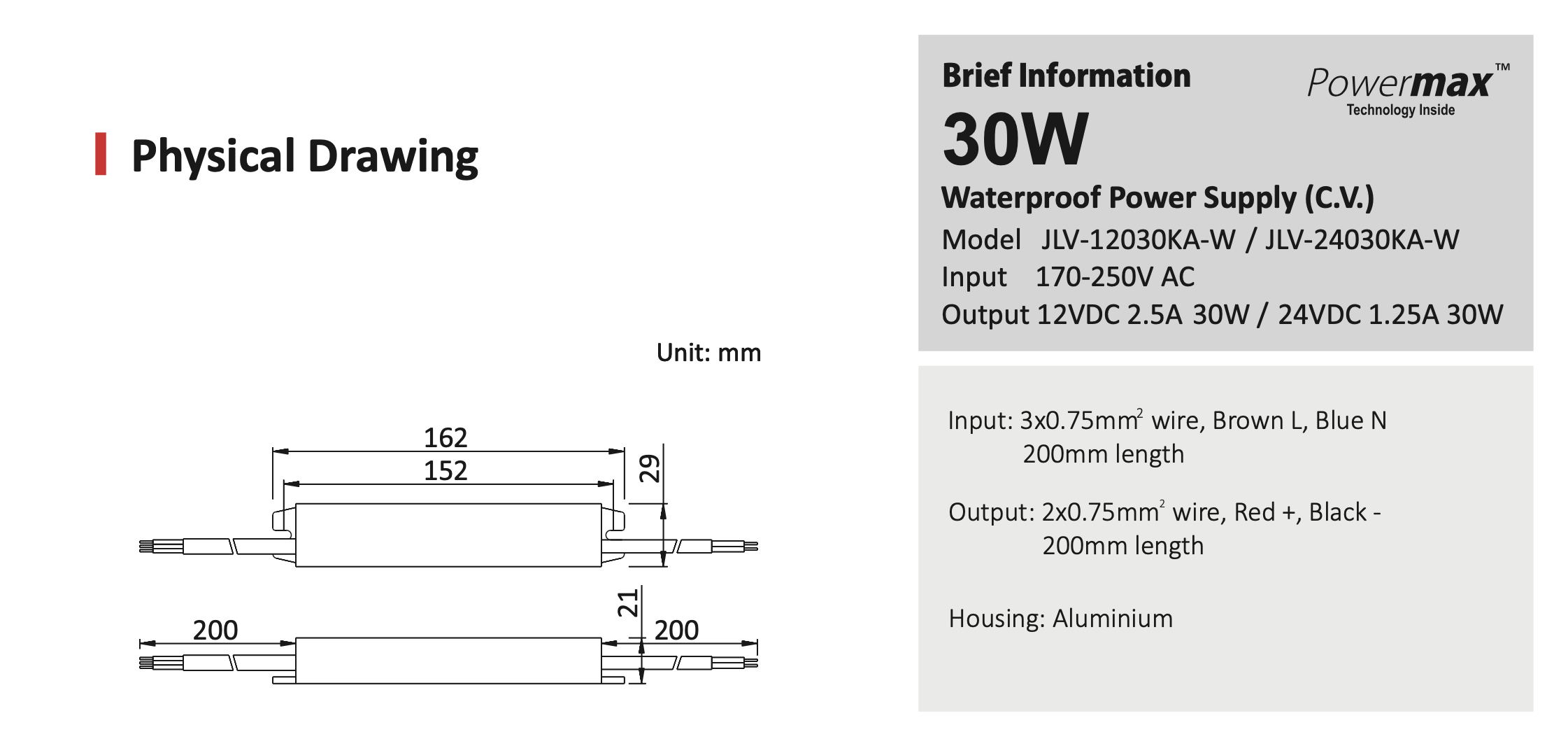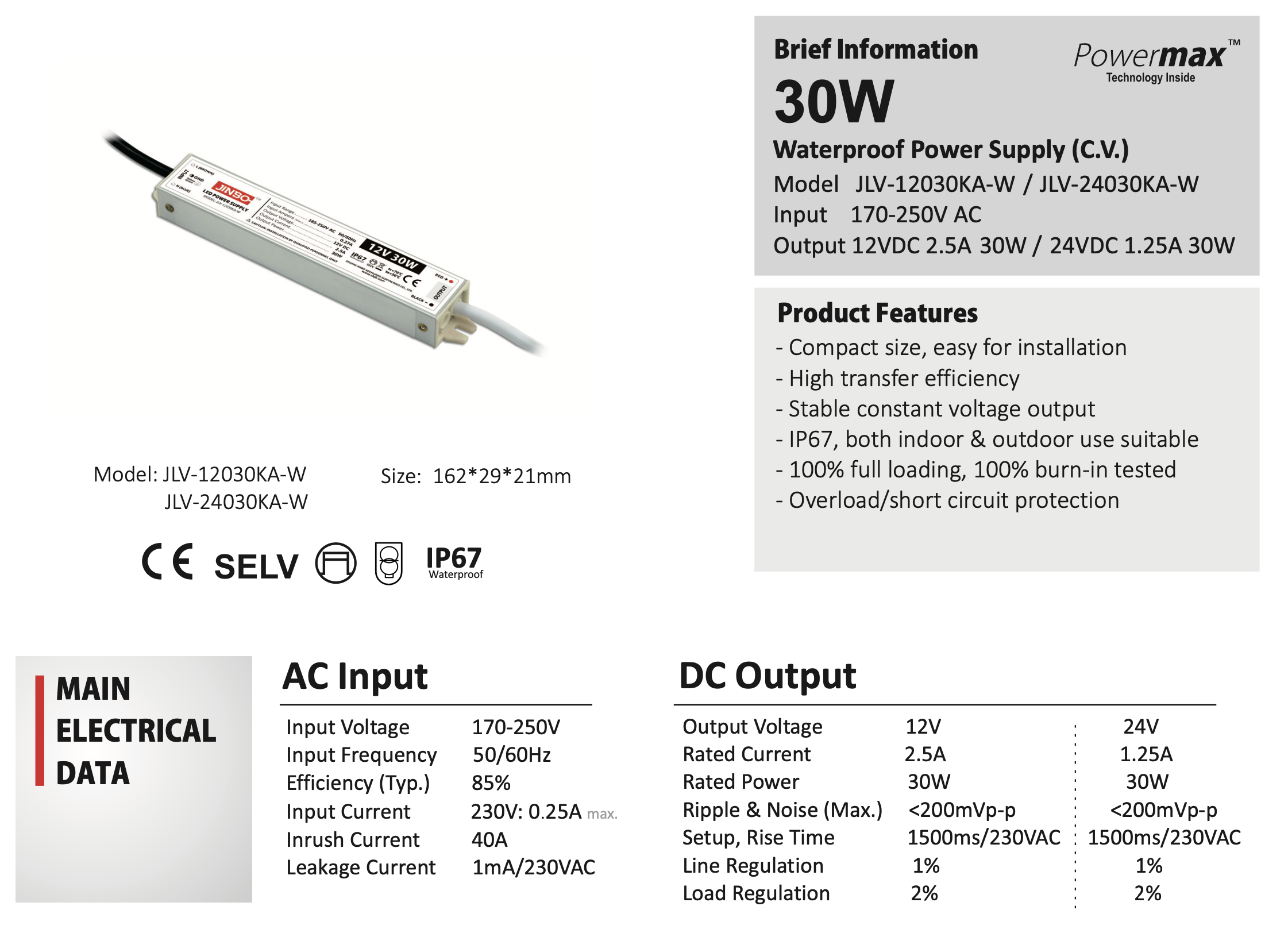 Zasilacz LED hermetyczny IP67 12V 30W JLV-12030KA-W JINBO 5 lat gwarancji