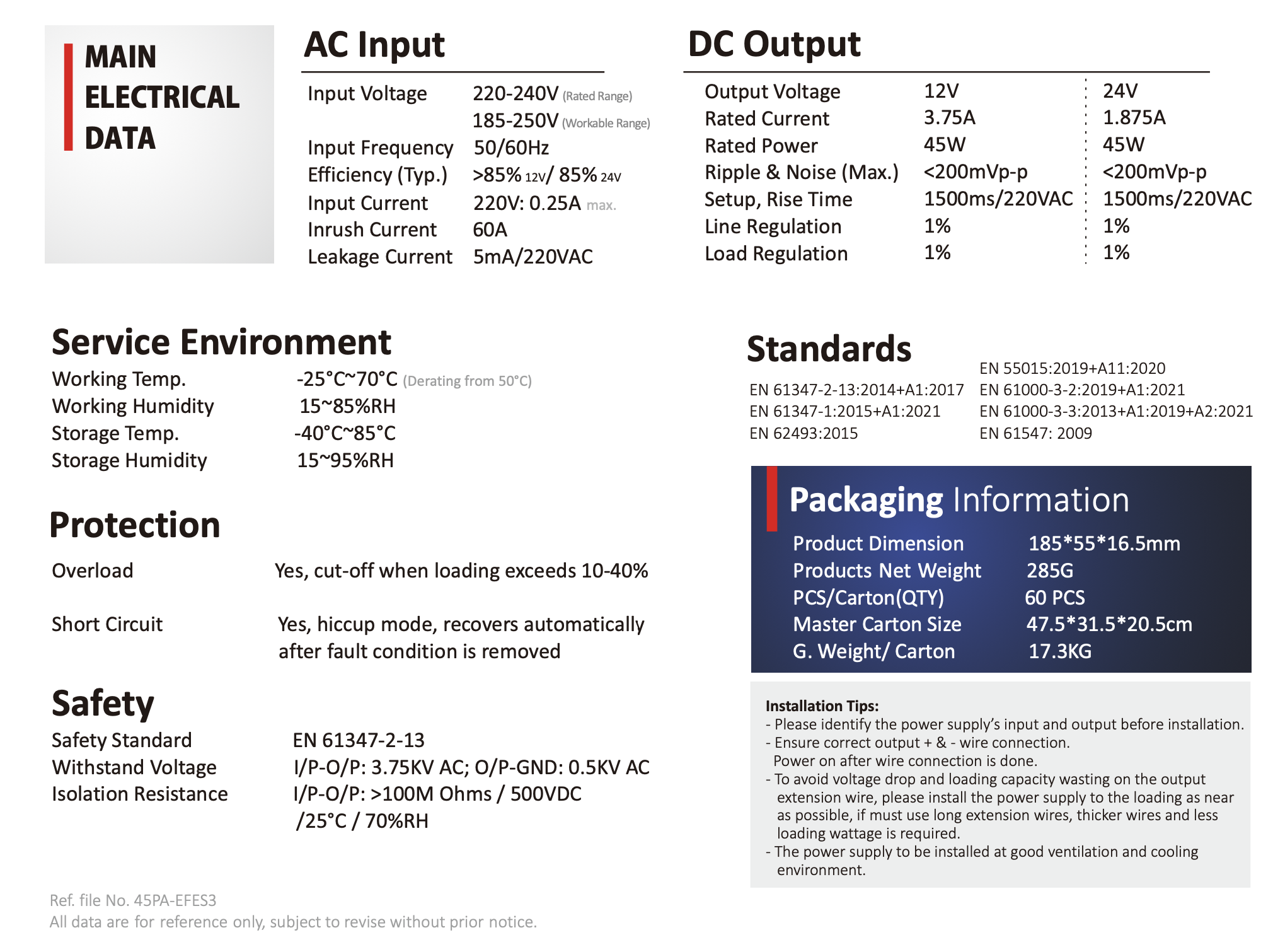 Zasilacz LED do luster SLIM IP54 24V 45W PFC JLV-24045PA-EF JINBO 5 lat gwarancji