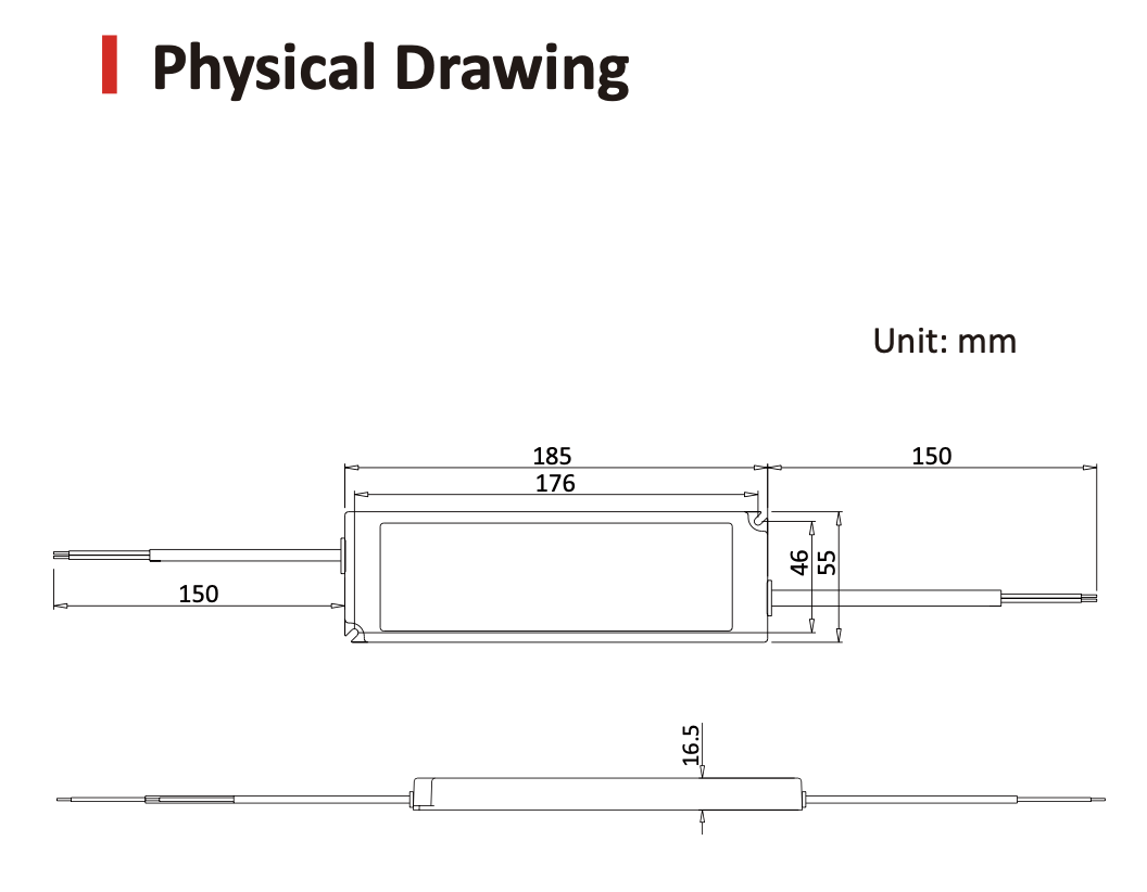 Wymiary zewnętrzne: 185x55x16.5mm (L*W*H)