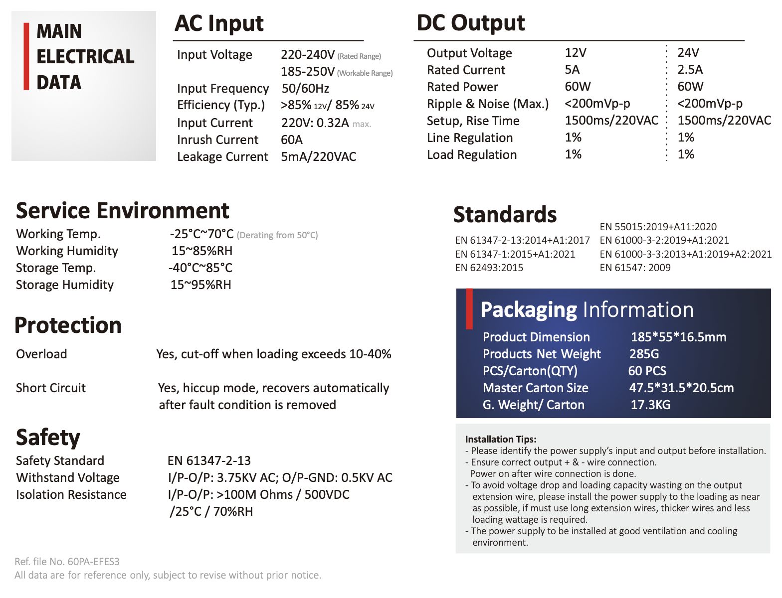 Zasilacz LED do luster SLIM IP54 24V 60W PFC JLV-24060PA-EF JINBO 5 lat gwarancji