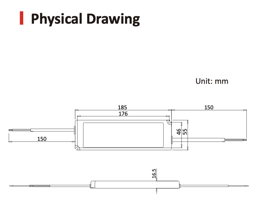 Wymiary zewnętrzne: 185x55x16.5mm (L*W*H)